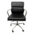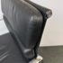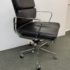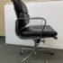 Design Plus Gallery presents a Soho Series Padded Management Chair by Laura Davidson. A nod to the mid century era. Made from the highest quality materials. Upholstered in a classic black leather. Metal hardware and frame is in a chrome finish. Minor wear from usage + age.