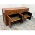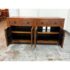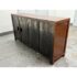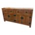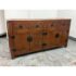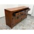 Design Plus Gallery presents a Ming Style Reproduction Sideboard from the Late 20th Century. The sideboard cabinet has the look and feel of an asian antique with the benefit of being modified to fit our modern way of life. The cabinet offers four top drawers that are equal in size with a bottom section of two pairs of cabinet doors that open to reveal pull out shelving. The back has been modified with a hole made a novice for cord maintenance. Other than the back hole the sideboard is in good condition for its vintage usage.