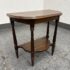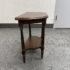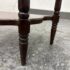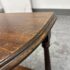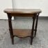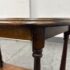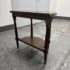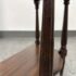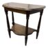 Design Plus Gallery presents a Traditional and Vintage Console Table. The table has old world, European, presence with its solid wood construction and spool like tapered legs. It has a rounded curve on top that is half oval shaped, making it perfect for a tight spot such as an entry way. The dark wood finish is in good condition with minimal wear for its vintage age + use.