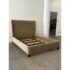 Design Plus Gallery presents a Taupe Velvet Queen Size Bed Frame from Crate & Barrel. The bed is sumptuous with the smooth appeal of velvet to romanticize your sleeping quarters. Sophisticated button tufting at the top of the headboard gives the bed a quiet nod to luxury. The frame is complete with slats so no need for a box spring. The style of bed has been discontinued by the brand. There is some visible wear to the upholstery but overall is in good condition for its usage.