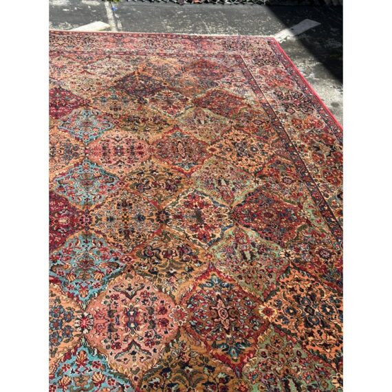 Design Plus Gallery presents a 11ft 7in × 16ft 3in Empress Kirman Area Rug by Karastan. From the Original Collection, the rug remains a classic graceful floral pattern with timeless appeal. New Zealand wool is power loomed referencing the multicolored domes that tower over the provincial city of Kirman in all colors of the rainbow. Broad and narrow bands create the border, with short natural fringe. Light surface soil; condition is good for age and use. Woven in the USA