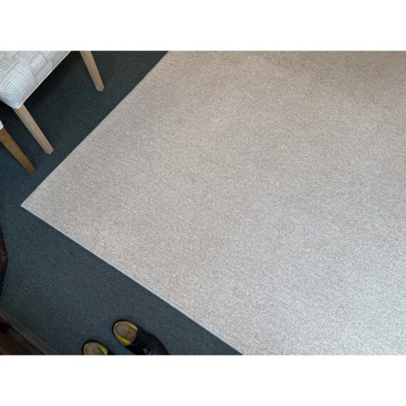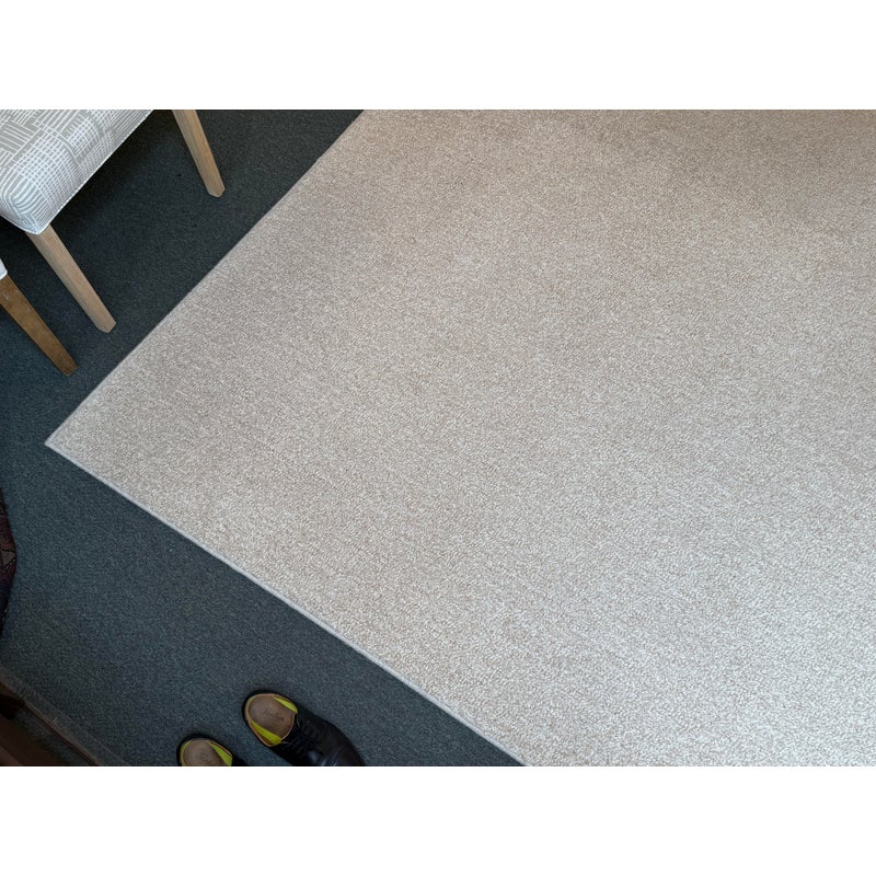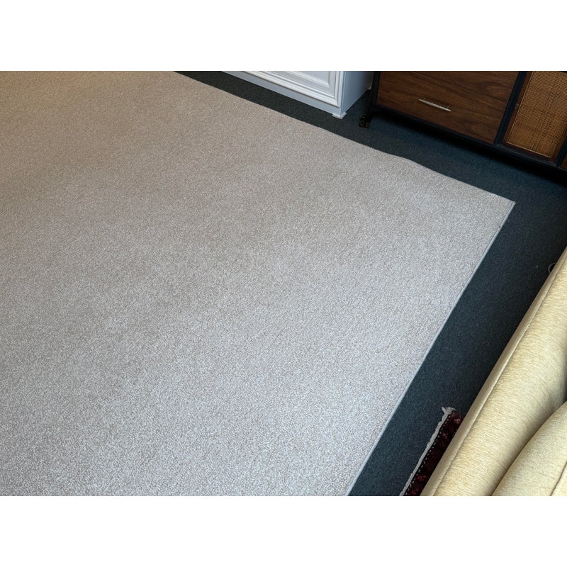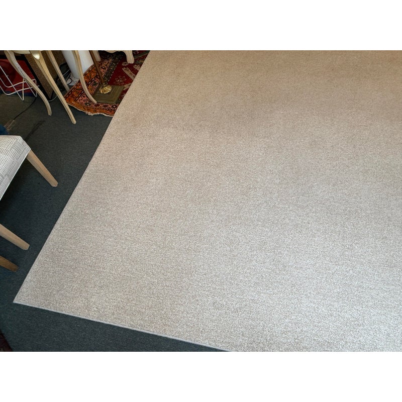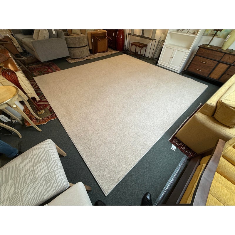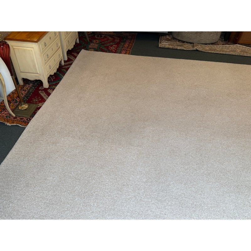Design Plus gallery presents 12ft X 12ft8in Cream Wool Shag Area Rug of Custom Design. The rug’s wool is a neutral mix of beige, cream, and light brown tones that create a speckled, slightly mottled look. It has a cozy, warm appearance, making it suitable for living rooms, bedrooms, or hallways where both comfort and resilience are needed.