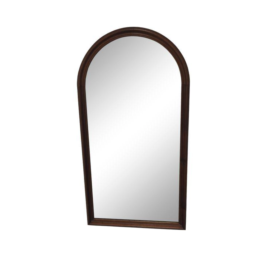 Design Plus Gallery presents an Antique wall mirror. The mirror has an arched top and a wood frame. The mirror is wired and ready to be hung wherever you might need a little reflection.