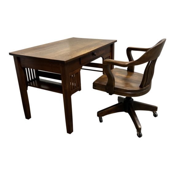1920’s Arts & Crafts Solid Oak Desk + Wood Banker’s Chair