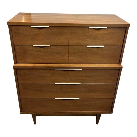 1960’s Kent Coffey the Tableau Scandia Walnut + Brass Highboy Dresser