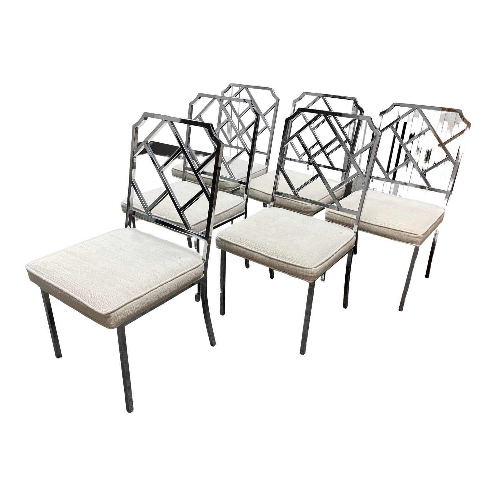 1970’s Milo Baughman for Design Institute of America (D .I. A.) Chrome Chippendale Side Chairs , Set of Six. Original Price: $9,000