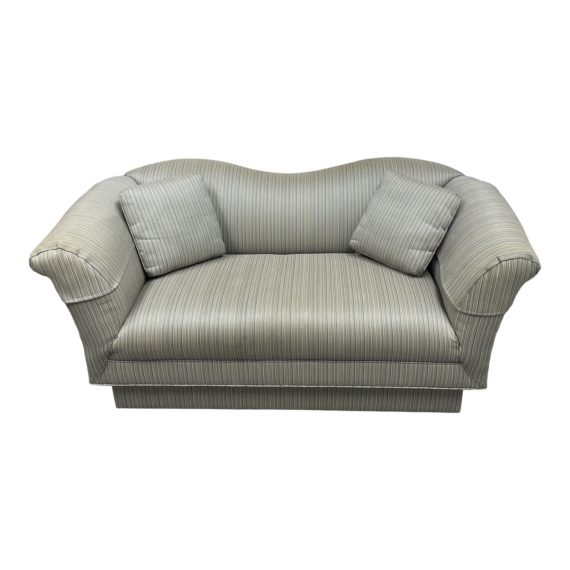 1980’s Vladimir Kagan for Directional Seafoam Green + Blue Striped Loveseat