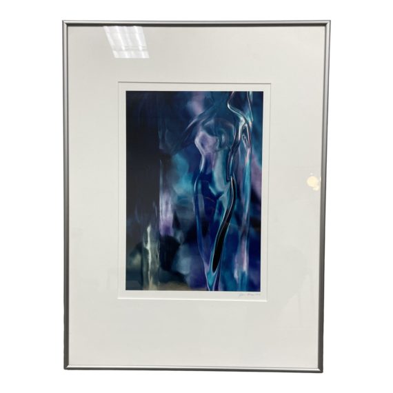 Design Plus Gallery presents a Late 20th century Custom Framed Color Photo by John Brown from 1986. This is a photo of a glass figure that appears water-like. This photograph has a lot of depth with blue and purple tones and would make a nice decorative accent. This art is in good condition and signed by the artist.
