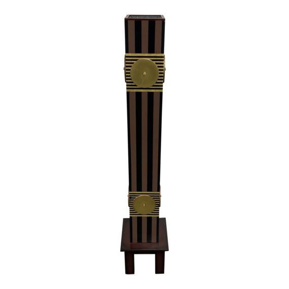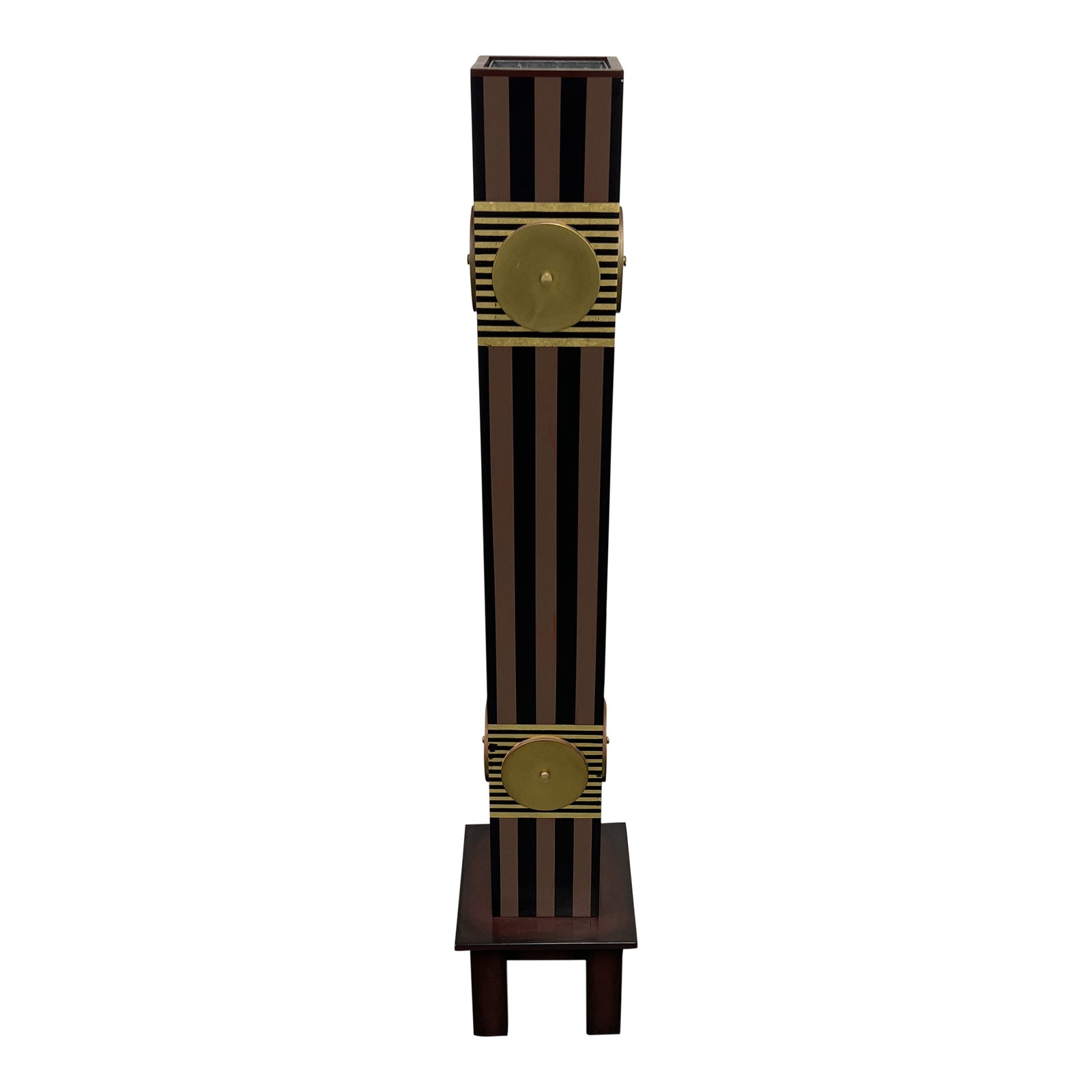 Design Plus Gallery presents a Post Modern Memphis Style Column Floor Vase Signed + Dated by Kesler & Mutrux. This unique piece was produced by Kesler and Mutrux and signed as such. The Vase has a column design with striping going in both vertical + horizontal patterns. There are also god disks that really transform this into more of a piece of art. The inside works splendidly as a vase, or a plate could be put on top to make display pillar. If you are looking for the unusual, this might be the console table for you! In good condition, with wear consistent with age + use.