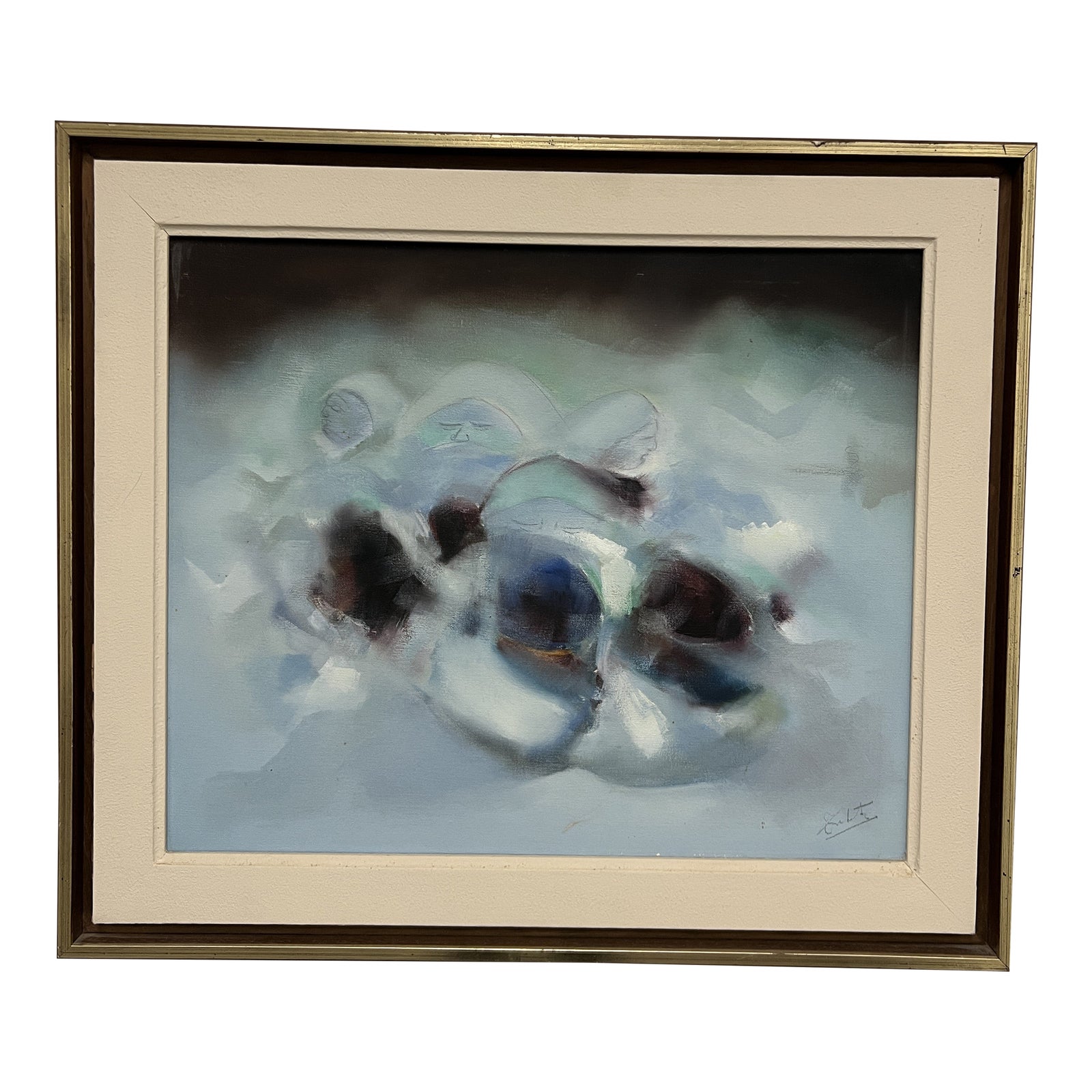 1990’s Abstract Blue Signed + Framed Original Peruvian Artwork