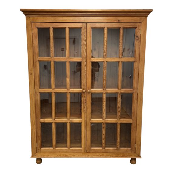 1990’s Custom Design Solid Pine + Glass Two Door Bookcase