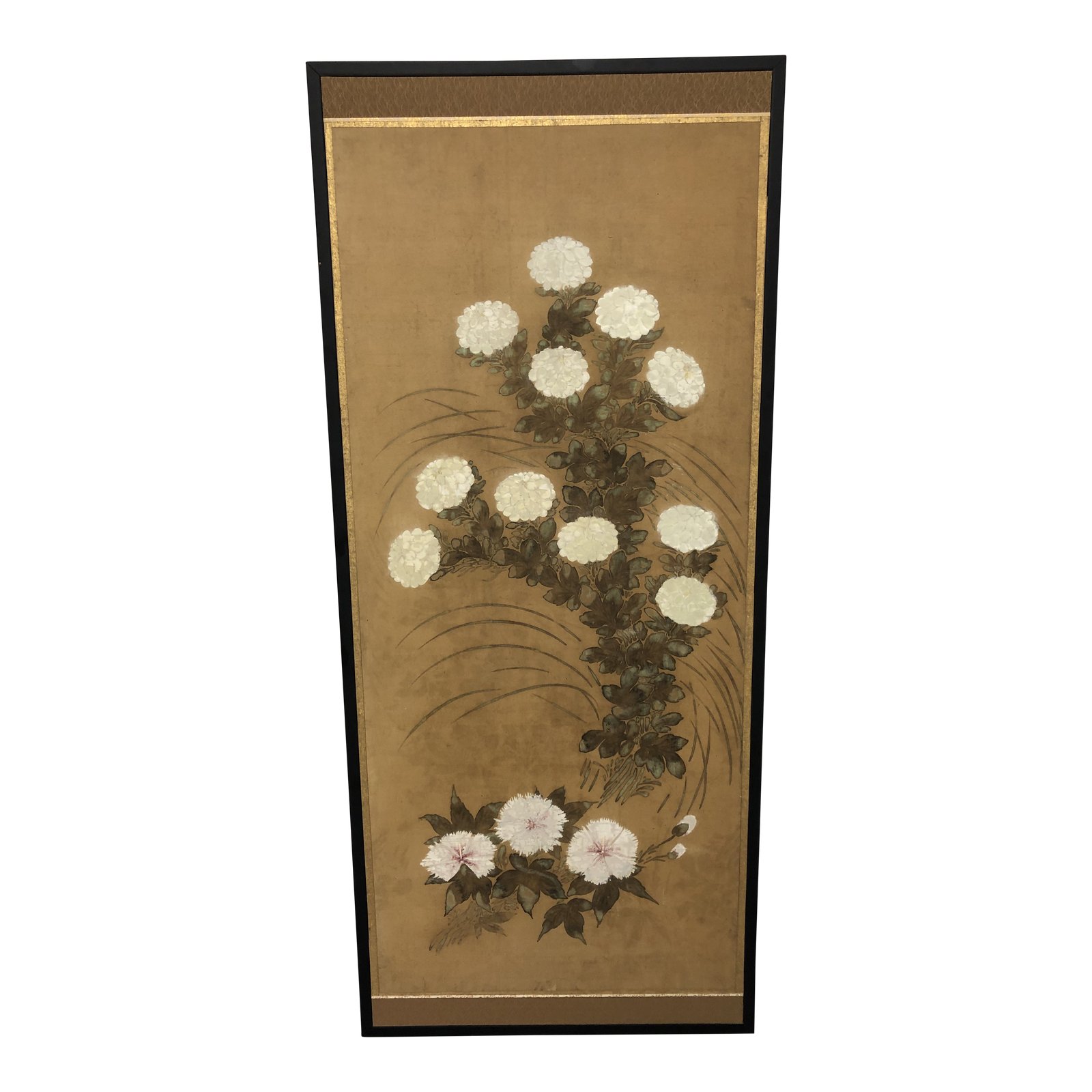 19th Century Antique Japanese Chrysanthemums Panel Screen. Original Price: $1,100