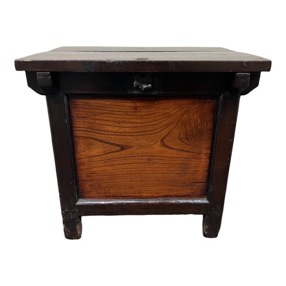 Design Plus Gallery presents an Antique Korean Chest. Rustic in its beauty, the solid wood cabinet is raised slightly on square legs formed from the structure of the box. Unhinged lid opens to undivided storage. Small ironwork details. Antique condition, consistent with age and use.