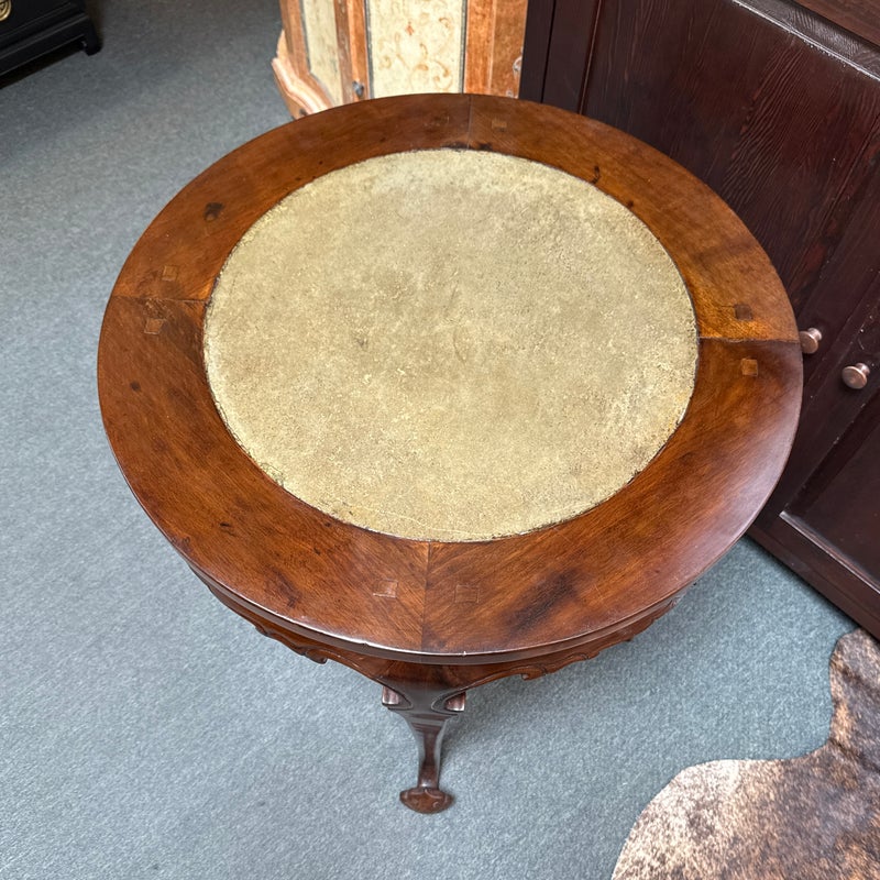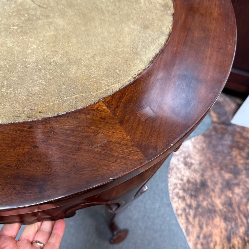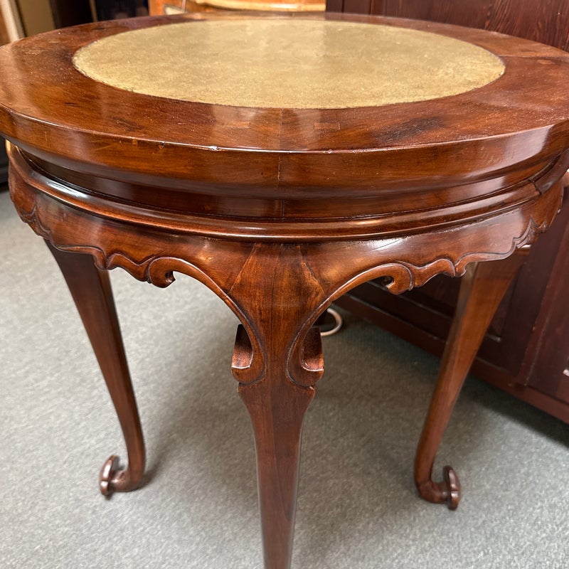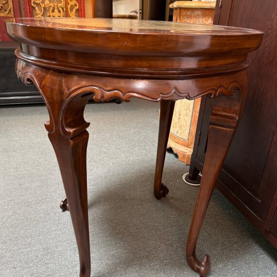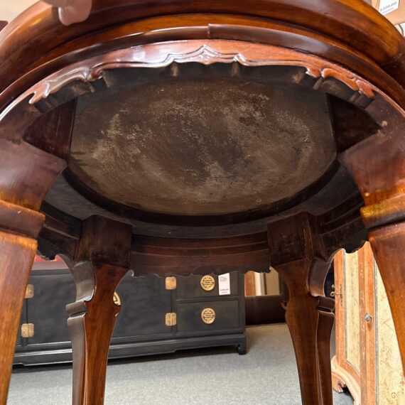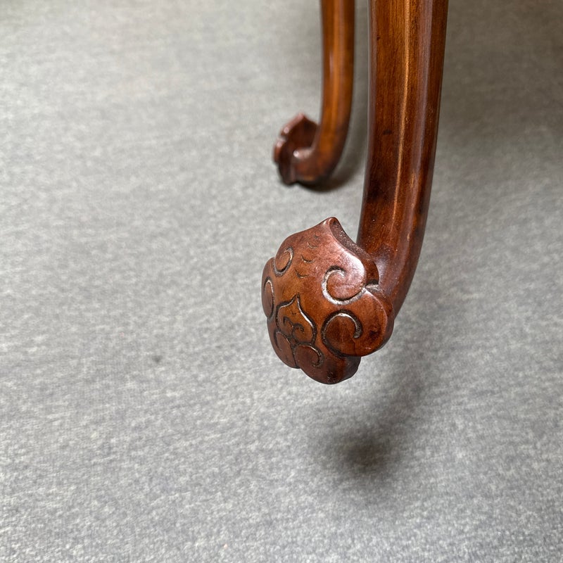 Design Plus Gallery presents a Marble + Wood Lingzhi Fungus Side Table. In traditional Chinese furniture and art, a “lingzhi fungus leg table” is a table that incorporates the shape of the lingzhi mushroom into its design, as such with its legs. This motif is a powerful symbol of longevity and good fortune in Chinese culture. Curved apron with elemental carving are in abundance. The side table is in good condition for its usage.