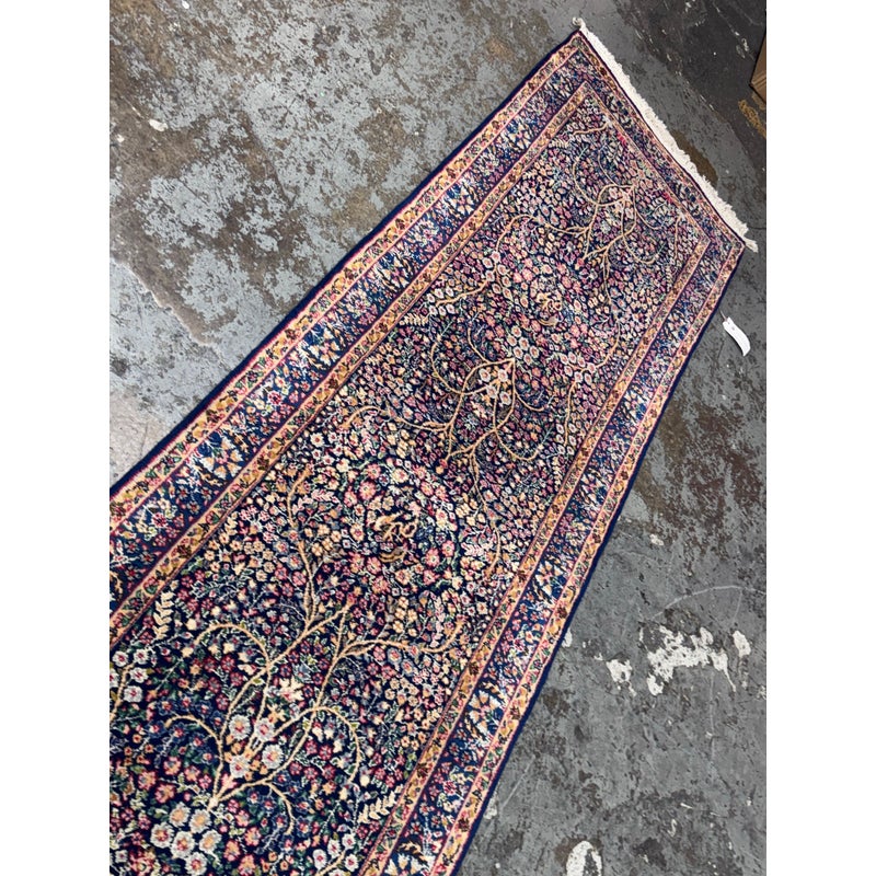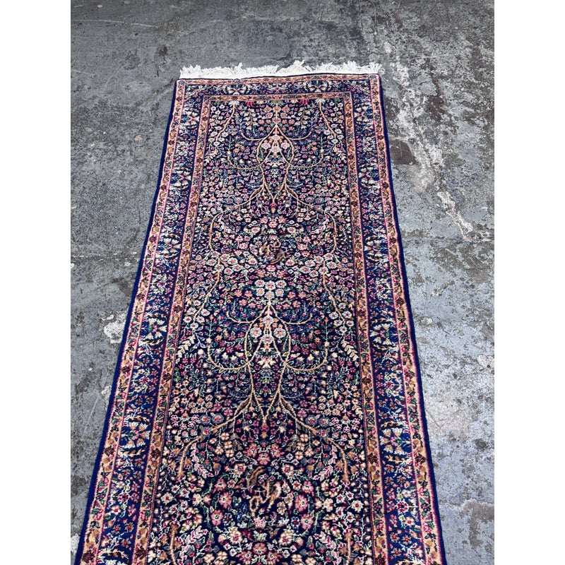 Design Plus Gallery presents a 2ft 6in x 10ft 1in Indo Persian Runner Rug from the Orient. Originating from the Mahallat region of Persia (Central Iran), Mahal rugs are widely sought after by interior designers and connoisseurs alike thanks to their free yet playful designs, which are complementary with the majority of home interiors. The runner is hand woven with rich colors in an enticing pattern that is pleasing to the eye. Tones of sapphire, ruby with amethsty and rose engage in playful repeating patterns will be like jewelry in your hallway. The runner is in good condition and was professionally cleaned/stored.