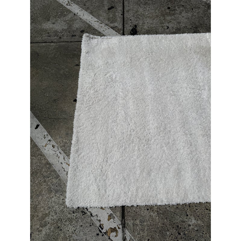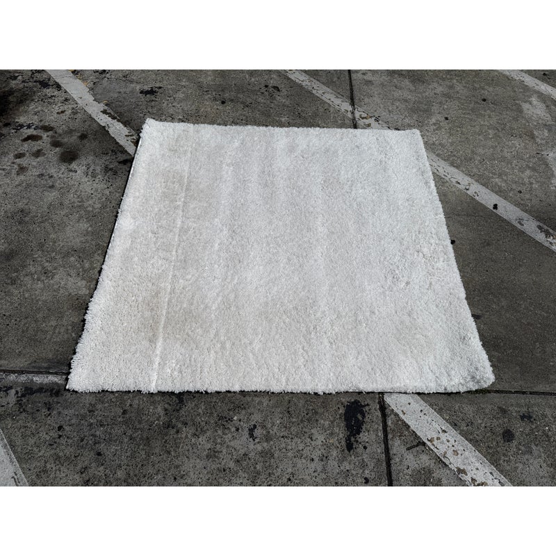 Design Plus Gallery presents the NuLoom Area Rug. The perfect 5 foot square shag rug is in an off white tone and is machine made. Made in Turkey. Visible wear is present but overall in good condition.