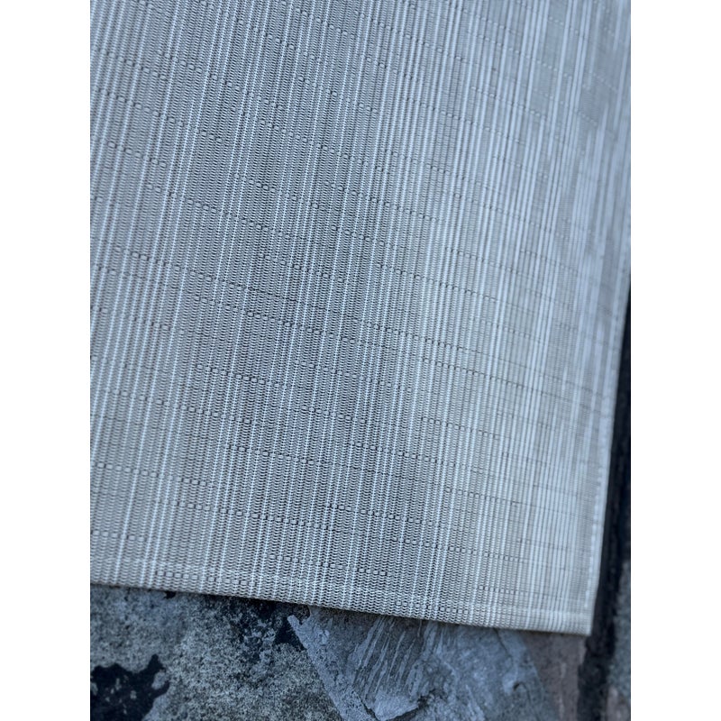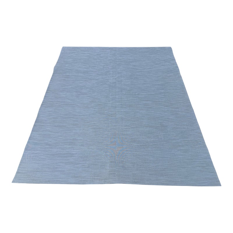 Design Plus Gallery presents the 6ft 8in x 8ft 4in Custom Made Basketweave in Light Khaki Rug from Chilewick. The rug style is based on a traditional twill construction and it achieves a striking ombré effect by gradually shifting weaves. The signature bi-color extruded yarns are woven in such a unique way that the color seems to appear and disappear, breaking up the undulating lines. It has slip-resistant latex and no rug pad needed. Wherever you get to use this rug it will be safe with its technology allowing it for indoor use and outdoor. Is in good condition for its usage with minimal visible wear. Made in the USA.