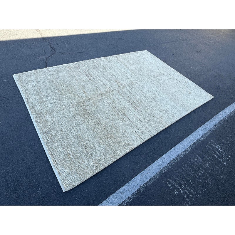 Design Plus Gallery presents the Acacia Rug by Armadillo.Hand-knotted from opulent wool and combined with abrash-dyed jute, the dappled facade has a charisma that recalibrates the senses. Emulating the expanse of aerial vistas, its handsome fawn-hued short pile exudes an elemental authenticity. Visible soil; condition is fair for age and use.