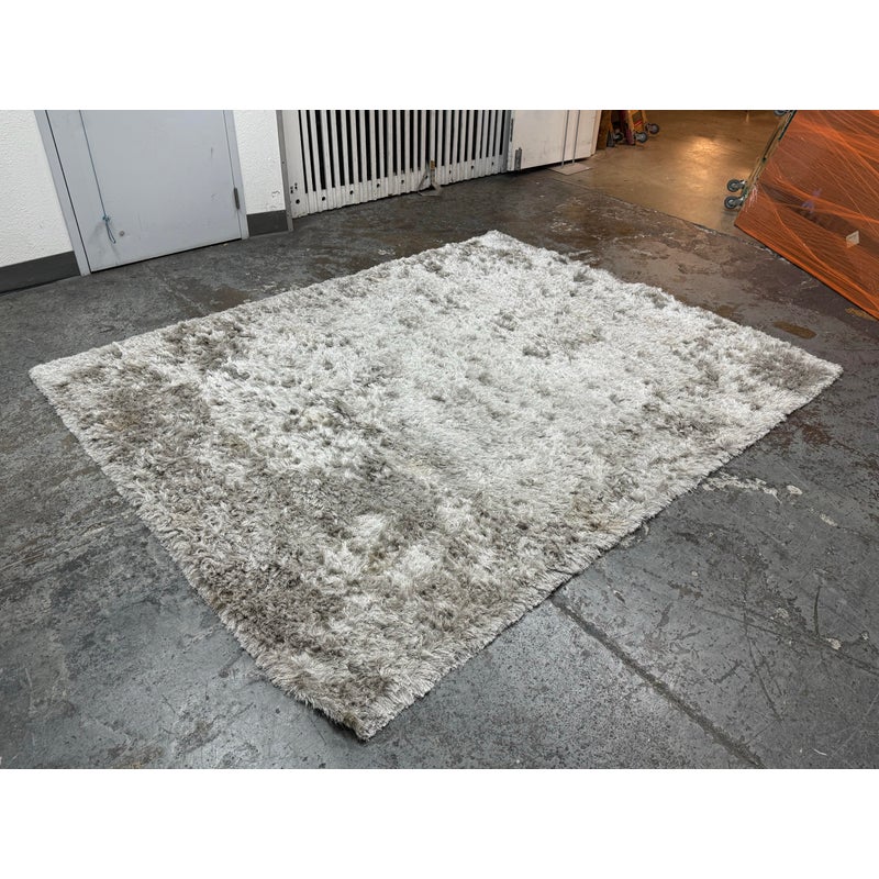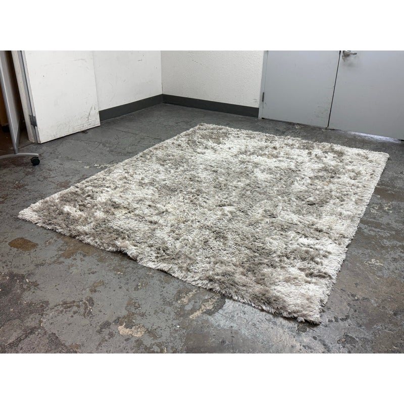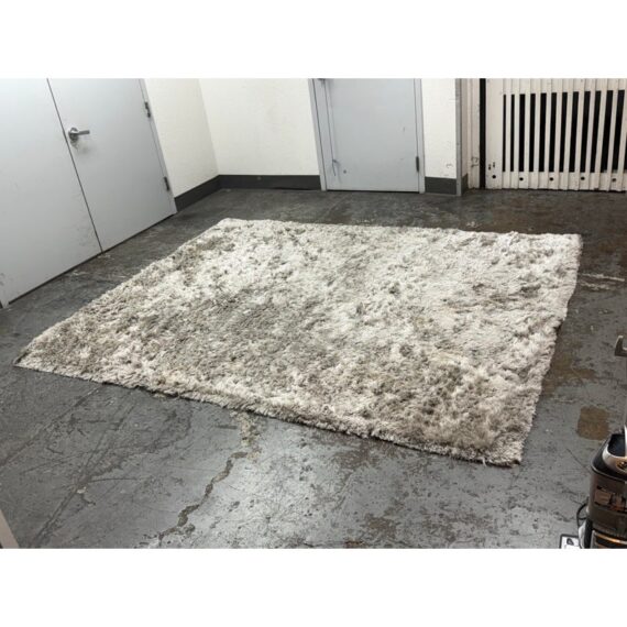 Design Plus Gallery presents a 7ft 6in x 9ft 6in Shag Area Rug from nuLOOM. This area rug has been hand tufted in India with wool fibers. It is a light gray all over color with deep, plush feeling underfoot. The underside of the rug is finished on the borders to protect the edges from fraying. Is in good condition for its usage.