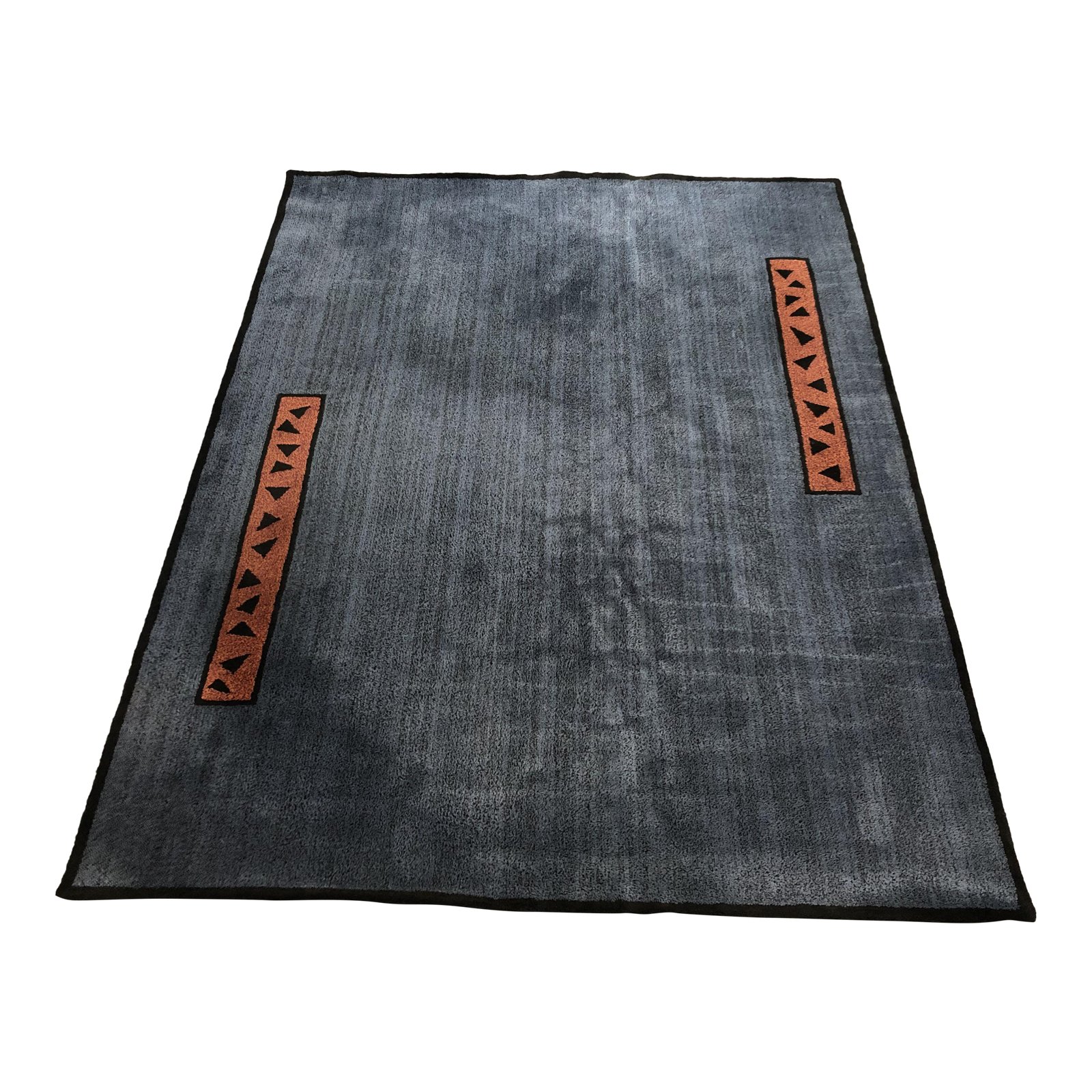 Design Plus Gallery presents a custom Wellington Weave area rug by Savnik. Custom blue and black with inset designs. Tag Reads: Custom Blue.Black #24/russet #226 & Mahogany #200. Pile Yarn 100% Skein Dyed Wool. Made in USA.