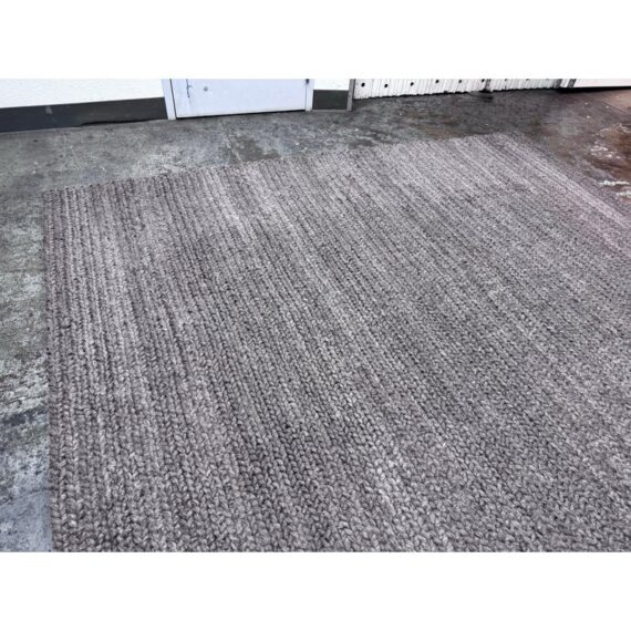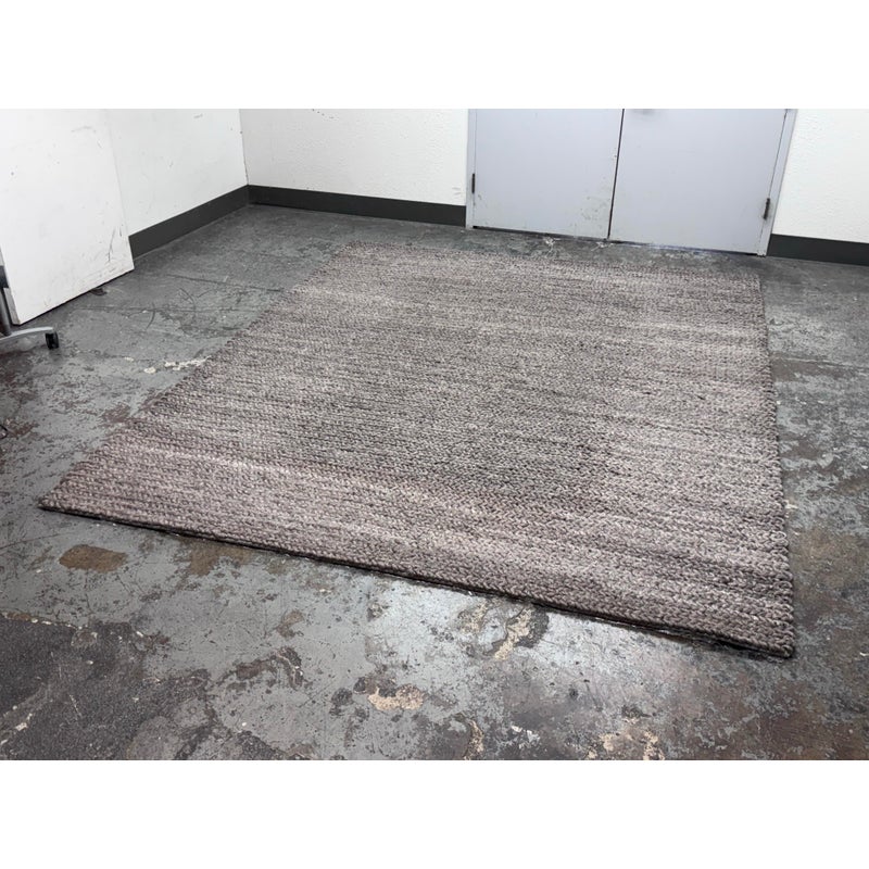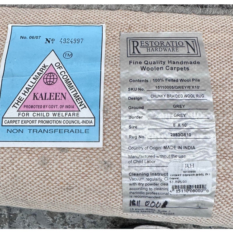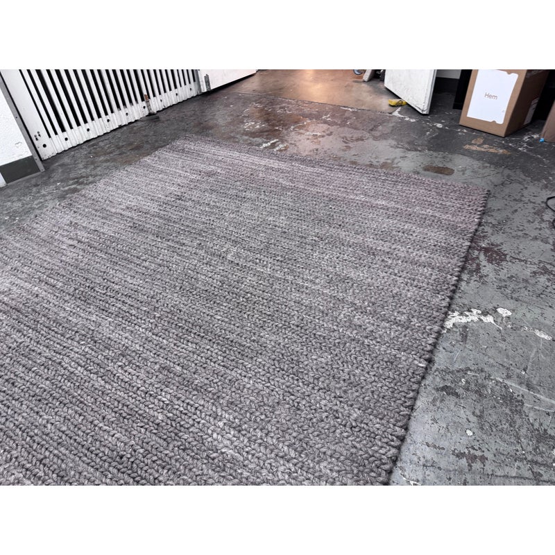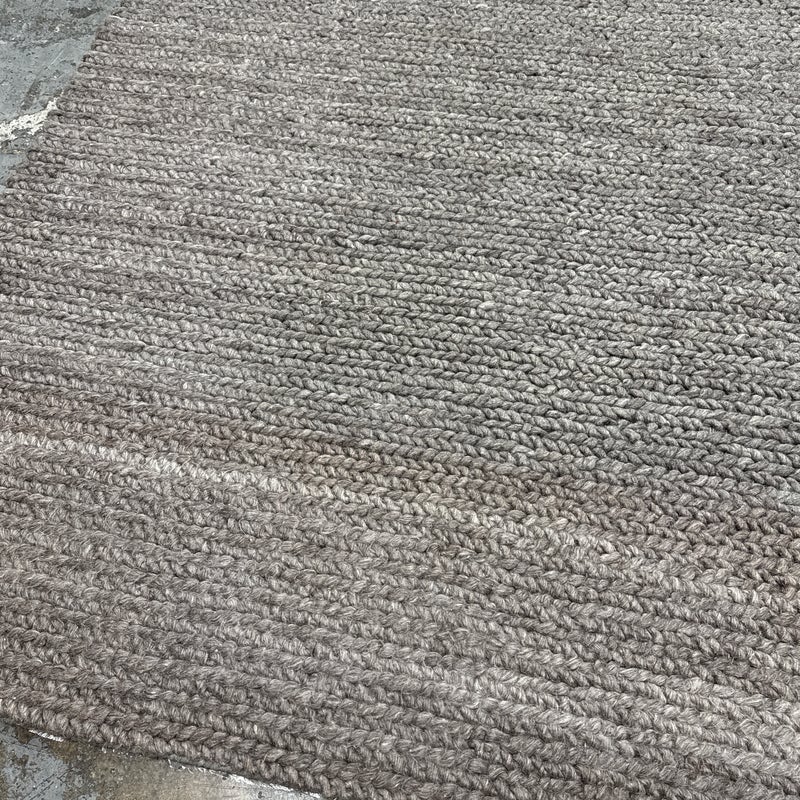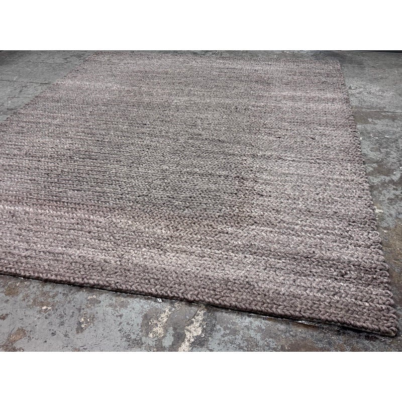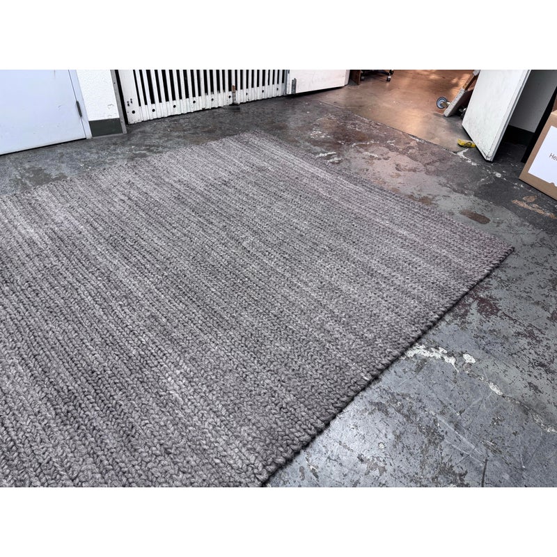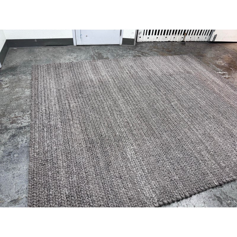 Design Plus Gallery presents an 8ft 3in x 10ft 2in Tala Chunky Hand-Braided Wool Rug from Restoration Hardware. Exceptionally chunky wool yarns imbue Tala with a rich texture that approaches woven art. The handwoven braiding showcases the wool’s distinctive qualities, the washed yarns offering generous softness underfoot. Natural variations in the wool make each rug unique. Is in good condition for its usage, minim discoloration from sun exposure.