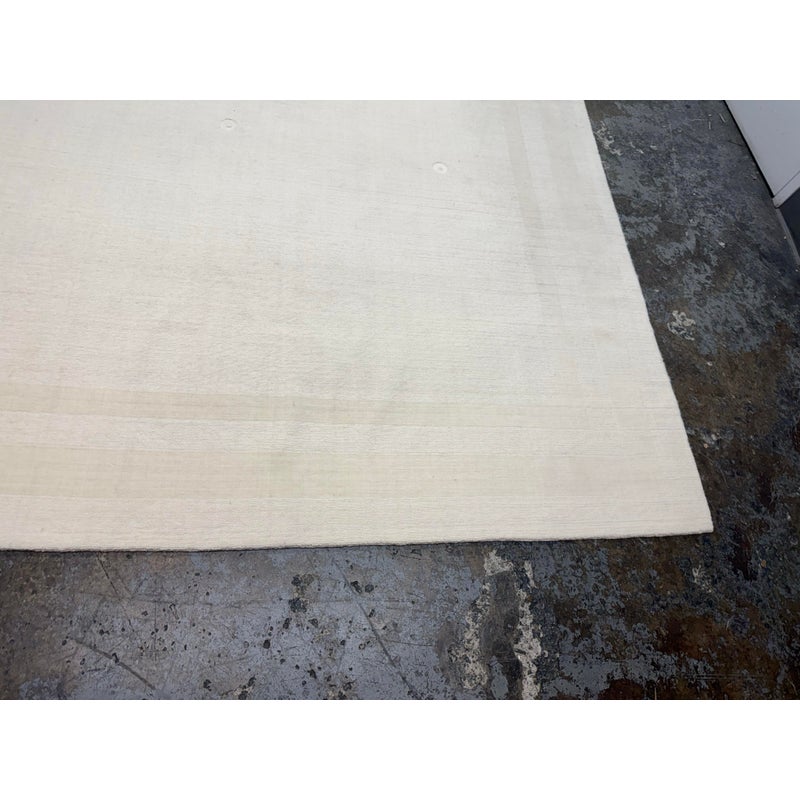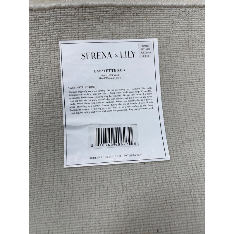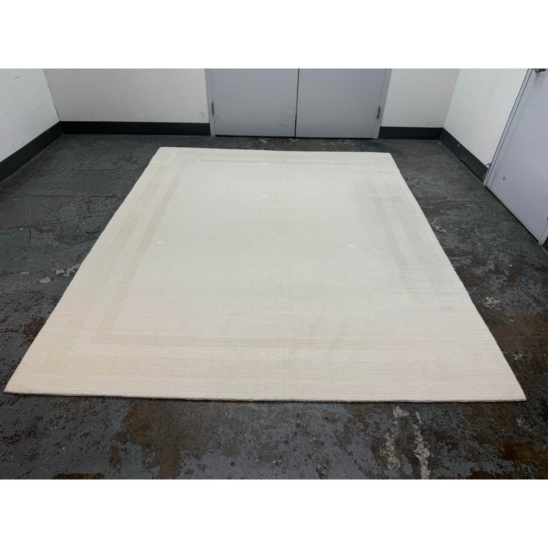 Design Plus Gallery presents the 8ft2in × 10ft Lafayette Rug from Serena & Lily. This area rug brings classic glamour to a room with its clean composition and understated presence. Hand-woven from New Zealand wool, it offers durability and comfort underfoot while maintaining a tailored look suited to a range of interiors. An ivory field is complemented by a striking sheer border, creating visual interest without overpowering surrounding furnishings. The balanced design lends itself well to living rooms, bedrooms, or dining spaces, where it pairs easily with both contemporary and traditional decor. Timeless and tasteful, the Lafayette rug serves as a versatile foundation that anchors a space with quiet confidence. In good condition, visible and minimal wear from usage.