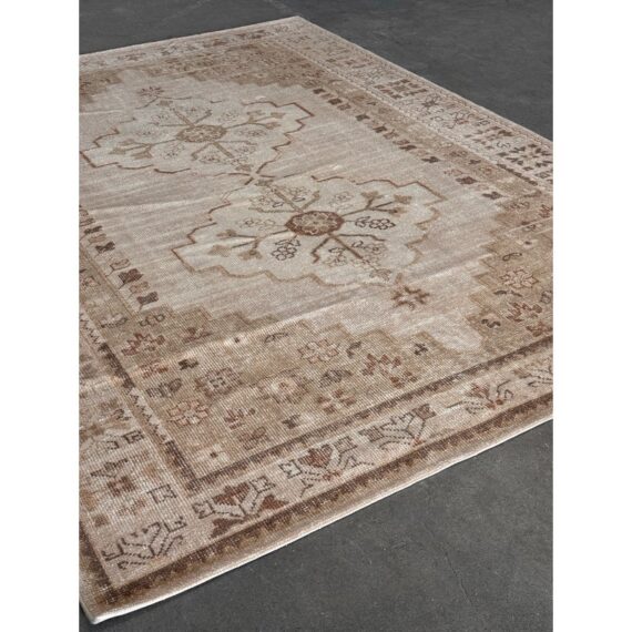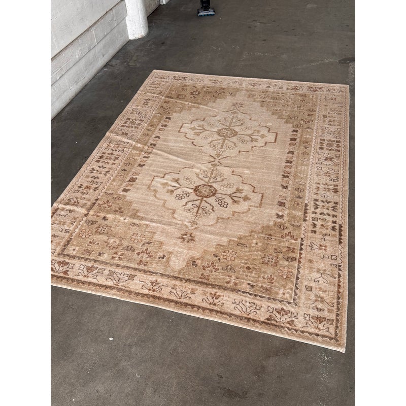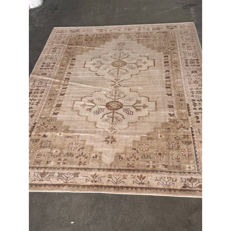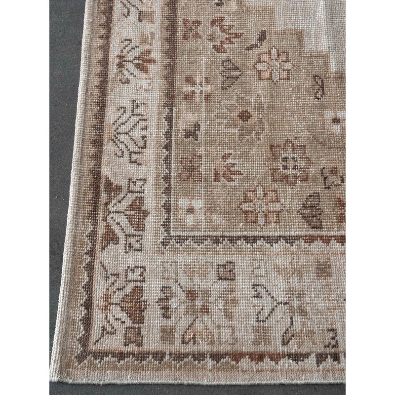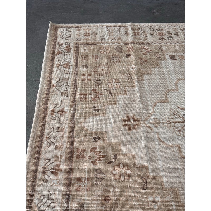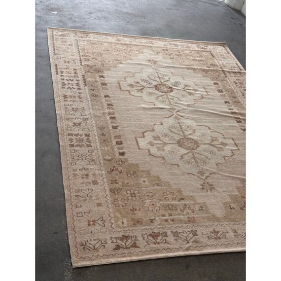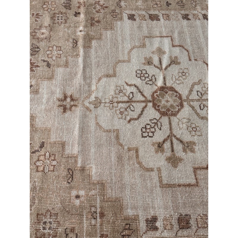 Design Plus Gallery presents a 9ft x 12ft Aurelia Hand-Knotted Wool Rug from Pottery Barn. This hand-knotted rug is made from wool with a central medallion and stepped geometric borders. The palette includes ivory and sand tones with muted terracotta accents, plus small stylized floral and geometric motifs throughout. The low, even pile highlights the pattern while keeping the overall look relaxed. It is in good condition with visible and minimal wear from usage. Made in India.