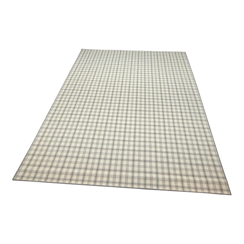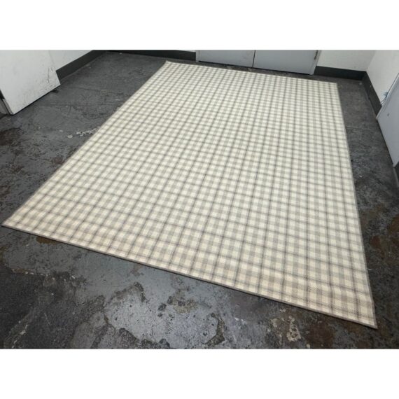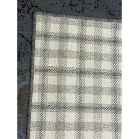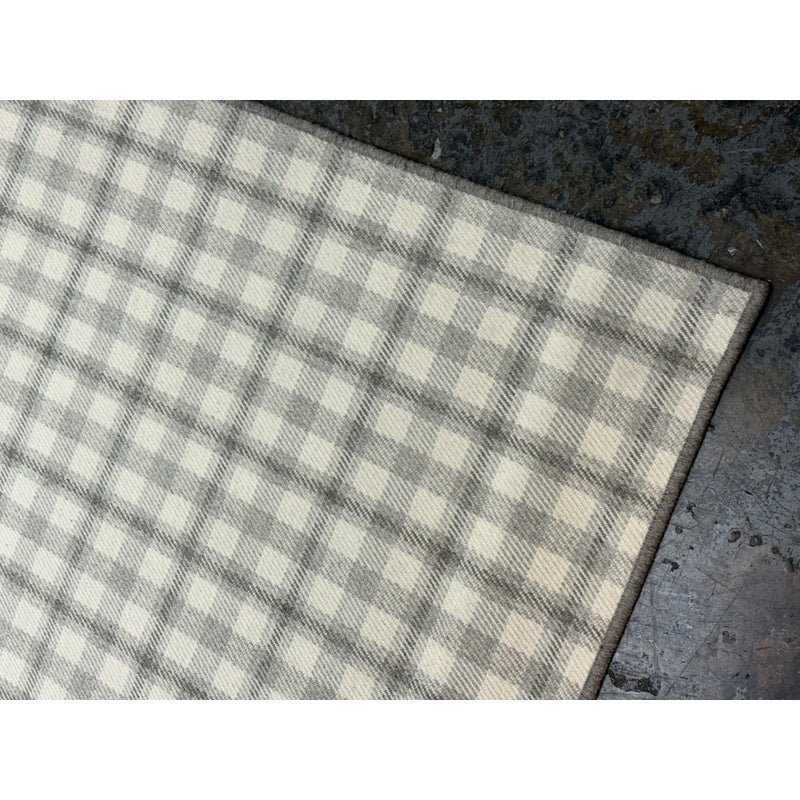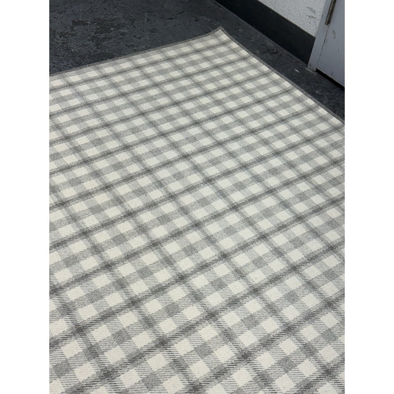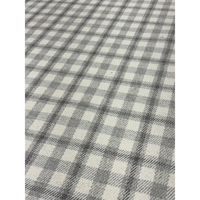Design Plus Gallery presents a 9ft x 12ft 1in Hand Loom Area Rug from Fibreworks. The style of rug is from their Verden collection in their color way Summit Gray. The rug is a composition of wool with cloth backing and has a repeating plaid pattern. The rug is in good condition for its usage with minimal wear and tear to it. Made in the USA.