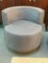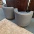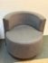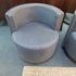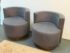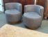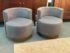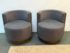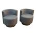Design Plus Gallery presents a Pair of Custom No.735 Swivel Lounge Chairs, from A. Rudin. A very contemporary silhouette with deeply cushioned and wood trimmed barrel back and smooth swivel mechanism in the washed wood plinth base. Upholstered in rich wool blend textured gray upholstery. Condition is good for age and use.