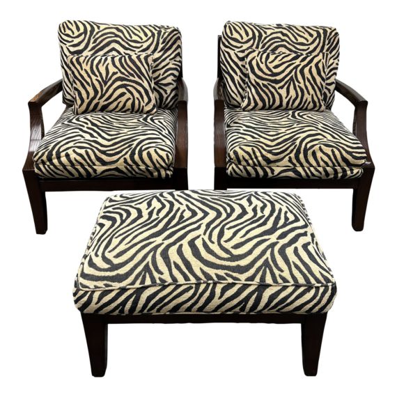 A. Rudin Number 620 Zebra Print Armchairs + Ottoman Set. Original Price: $8,300
