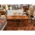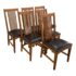 Design Plus Gallery presents a Set of Eight Cherry Wood Dining Chairs from Antonio Sibau. These distinctive chairs are crafted from solid cherry woods with architectural slat back that lightly reference the Arts & Crafts movement of the mid 20th century. This set is inclusive of side chairs and their seats are upholstered in cushioned black leather. Minor wear from usage, consistent with age and use. Made in Italy.