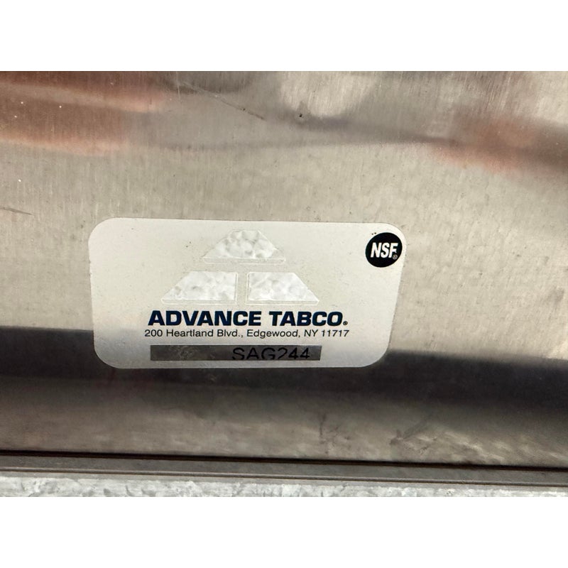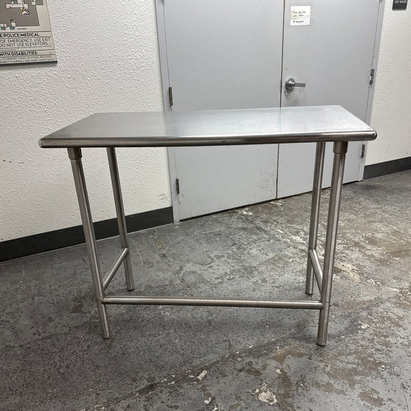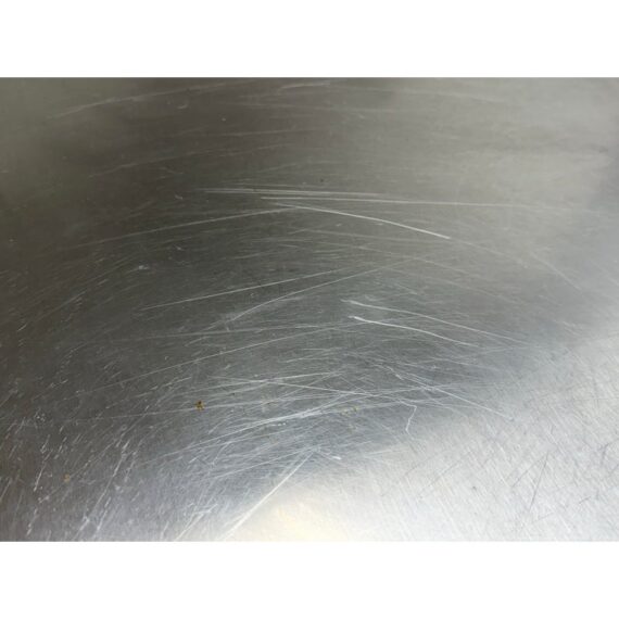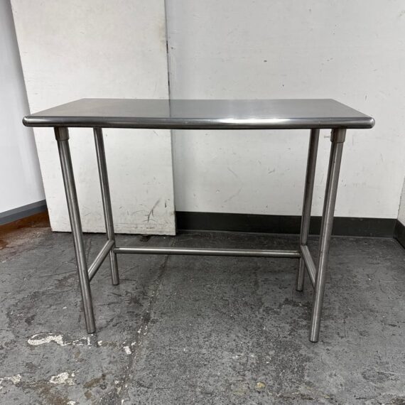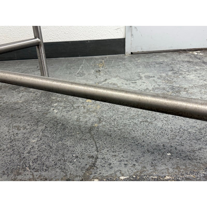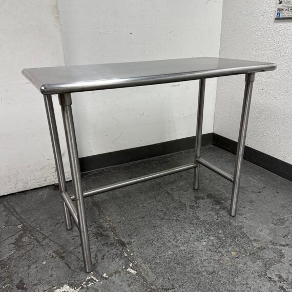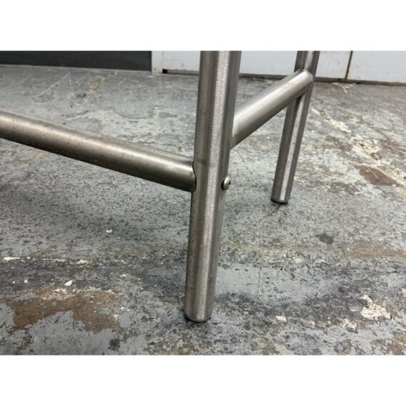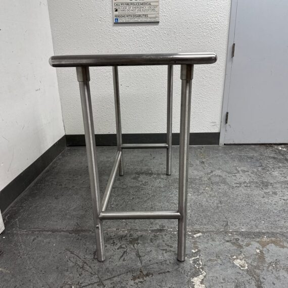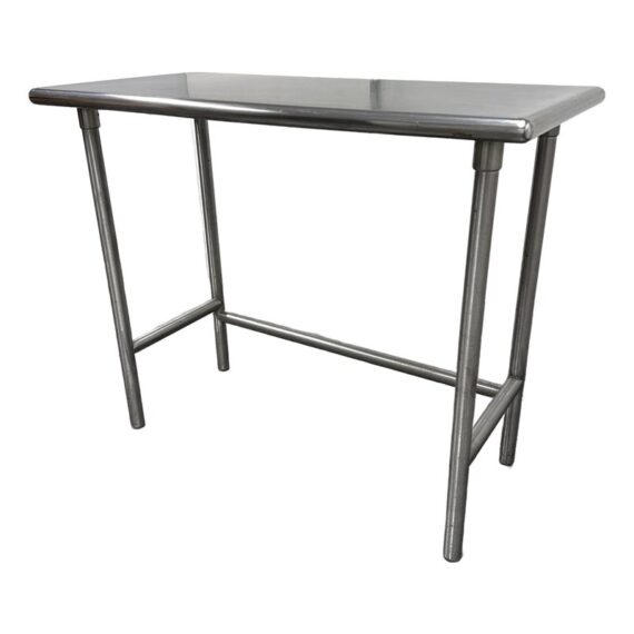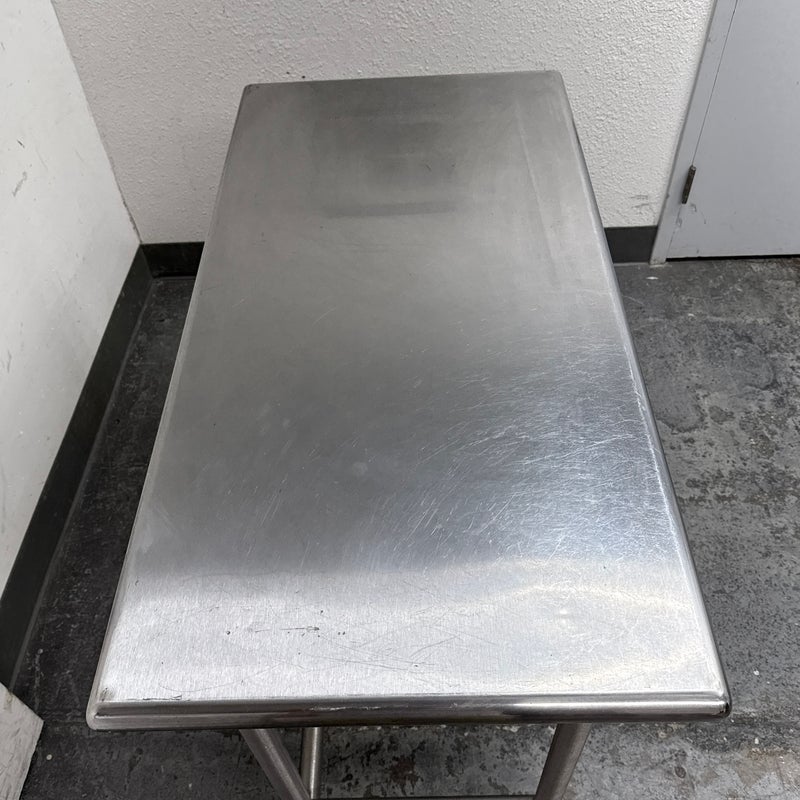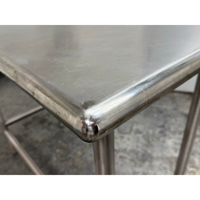 Design Plus Gallery presents a Stainless Steel Work Table from Advanced Tabco. This work table NSF certified table making it commercial grade. Has a sixteen gallon stainless steel top with an open base. Stainless steel legs with adjustable bullet feet and fully welded joints. The surface offered a sound deadened top. Shows surface wear to the steel but is overall in good condition with for its usage.