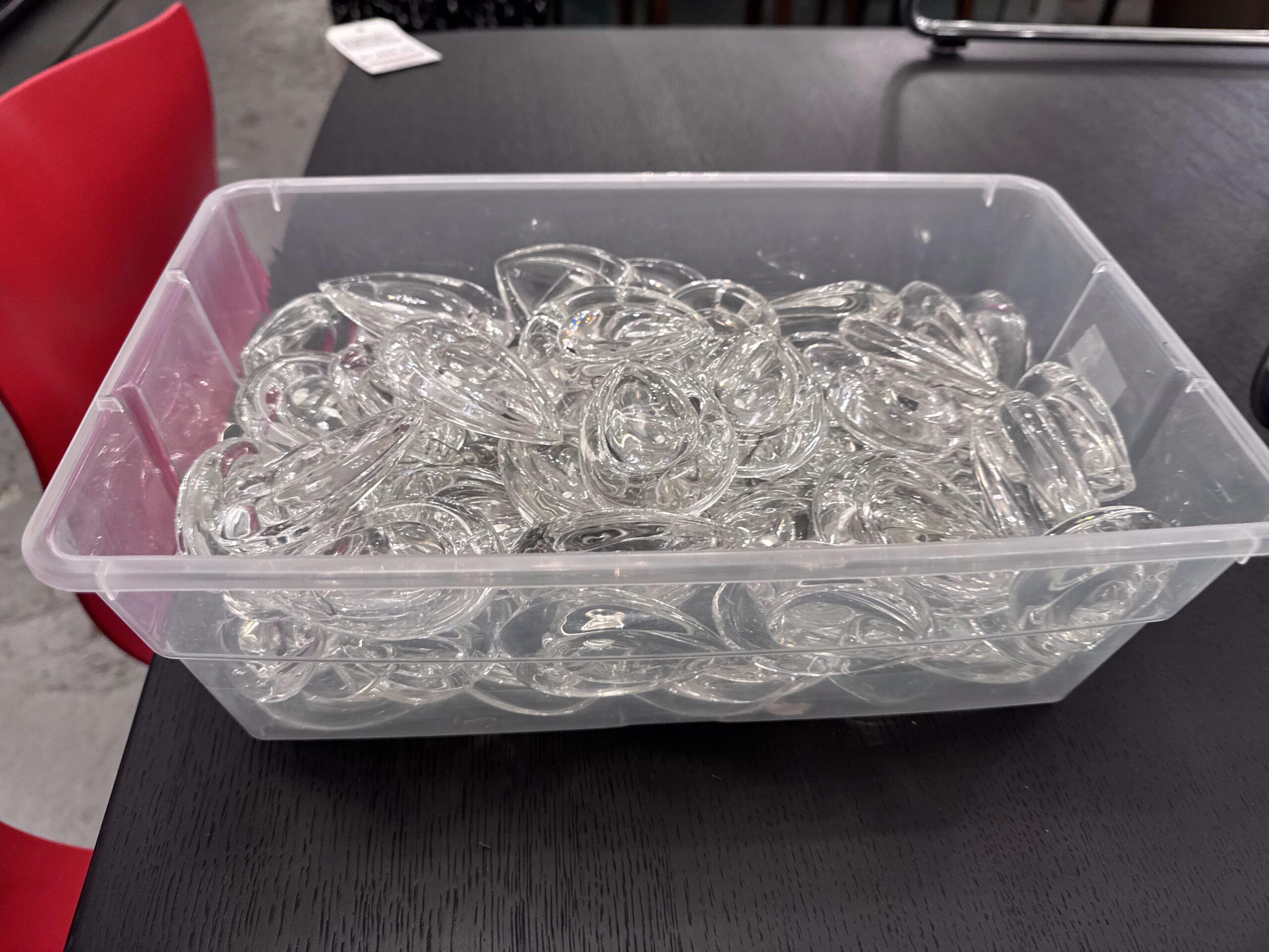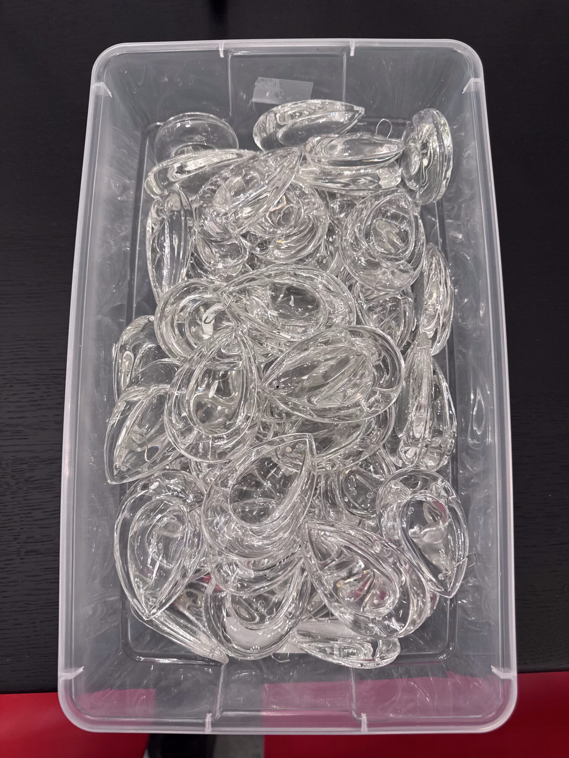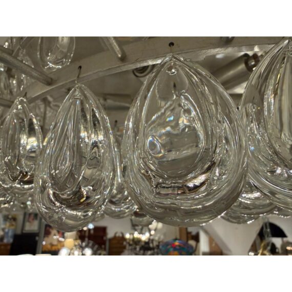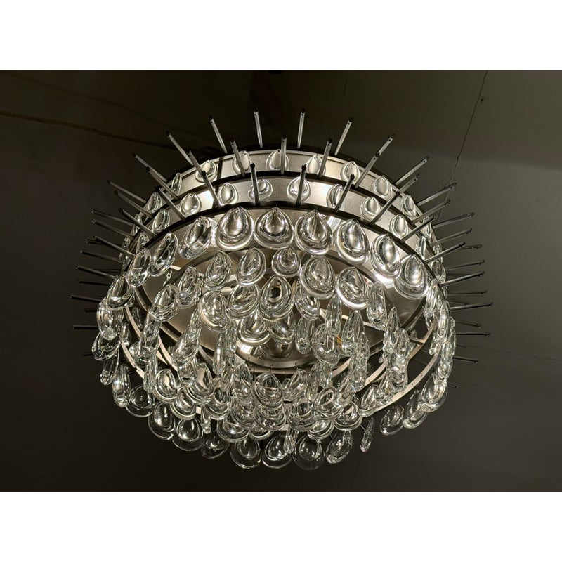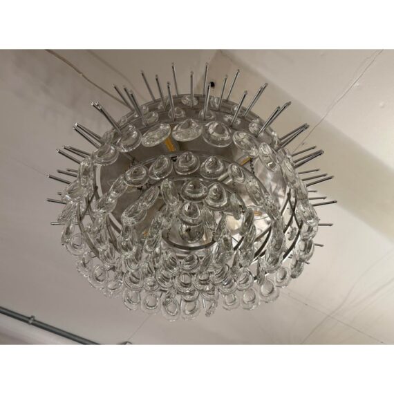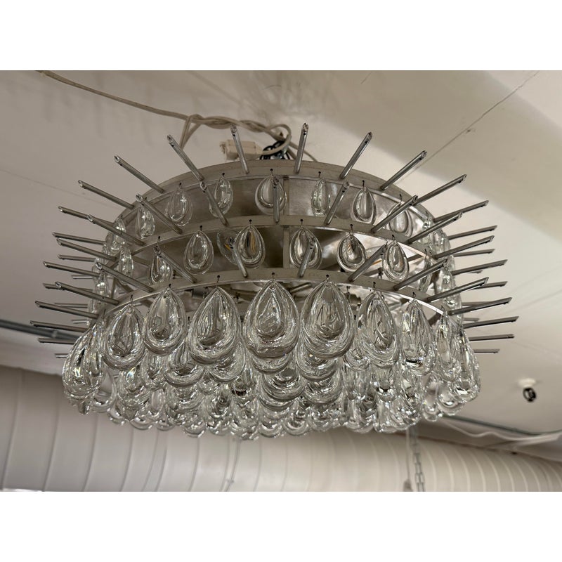 Design Plus Gallery presents the Liscia Flush-mount from AERIN. The Liscia is the perfect way to add some sparkle to a room, particularly larger spaces. Styled from teardrop crystals arranged around a tiered base, it is a beautiful addition to a living room, dining room, or anywhere you want to add an elegant touch. It is in good condition for its usage with not all the crystals attached in showroom and held separately.