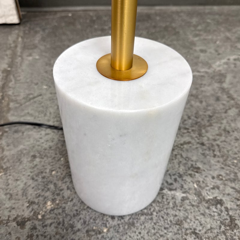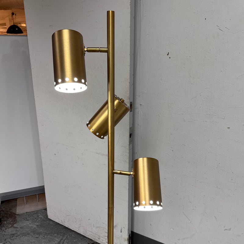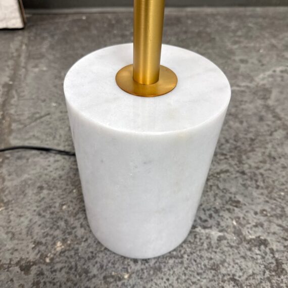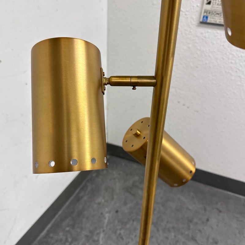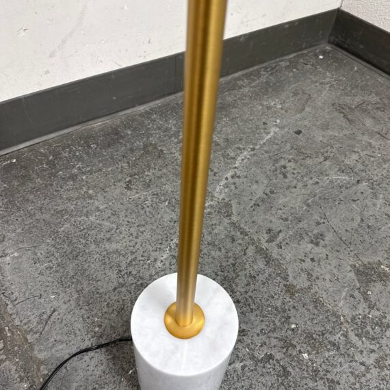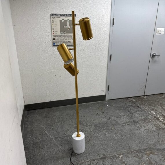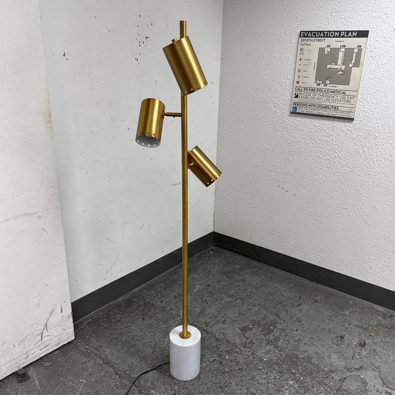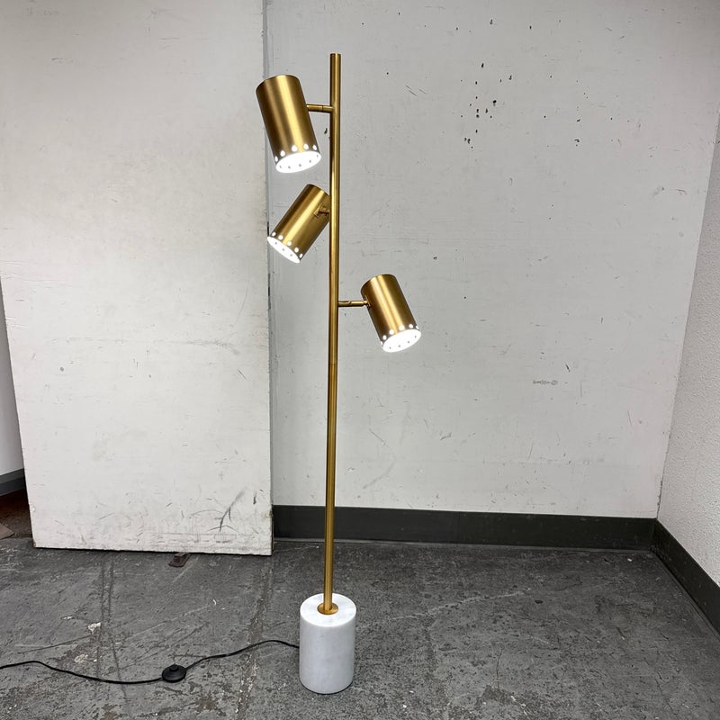 Design Plus Gallery Derry Floor Lamp from AF Lighting A perfect light for your home or office. Standing tall, its understated frame is made from metal and features an oil rubbed bronze finish. Up top, you’ll find three lights, each highlighted by an adjustable drum shade head to get the gleam right where you want it. With bronze finishes and a marble base this light will add a touch of modern sophistication to any room. It is in good condition, visible and minimal wear from usage.