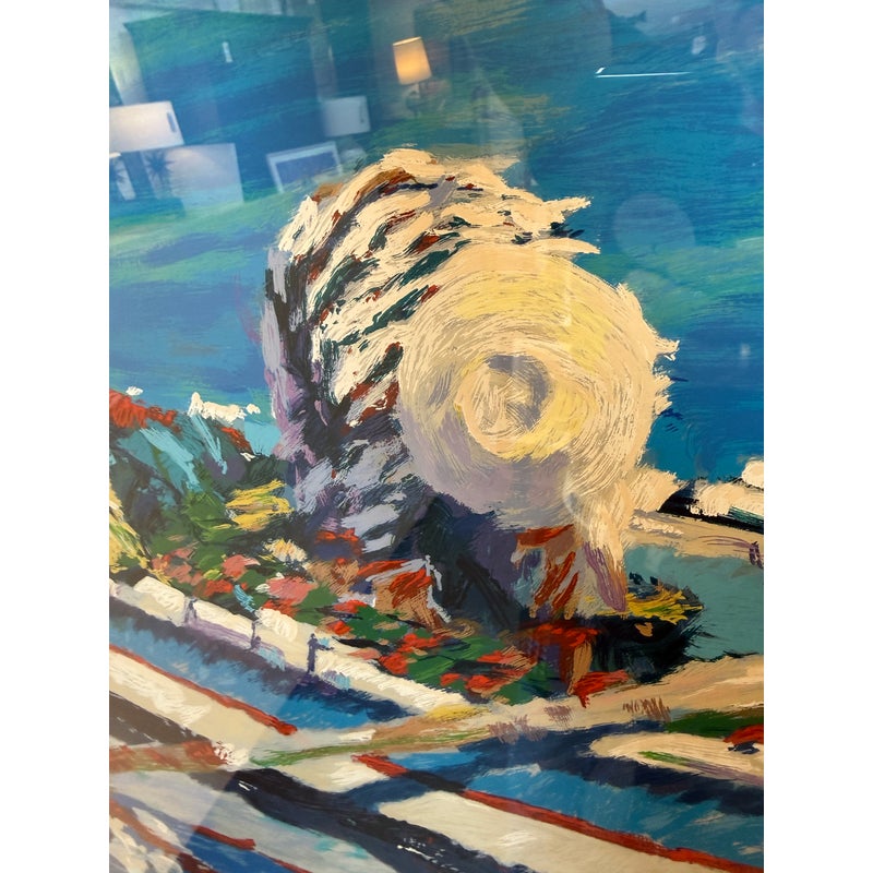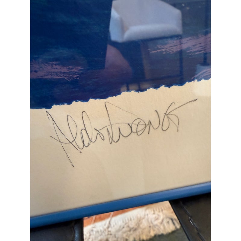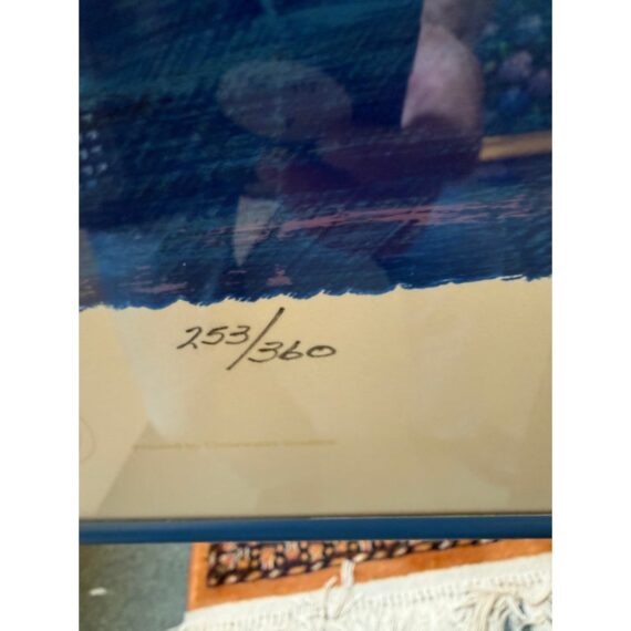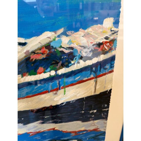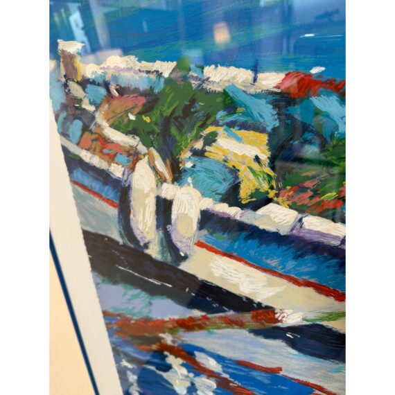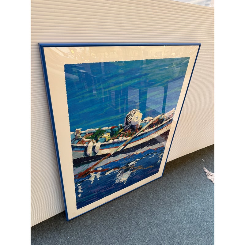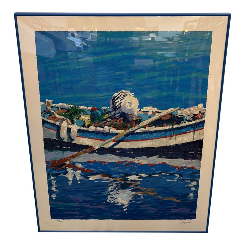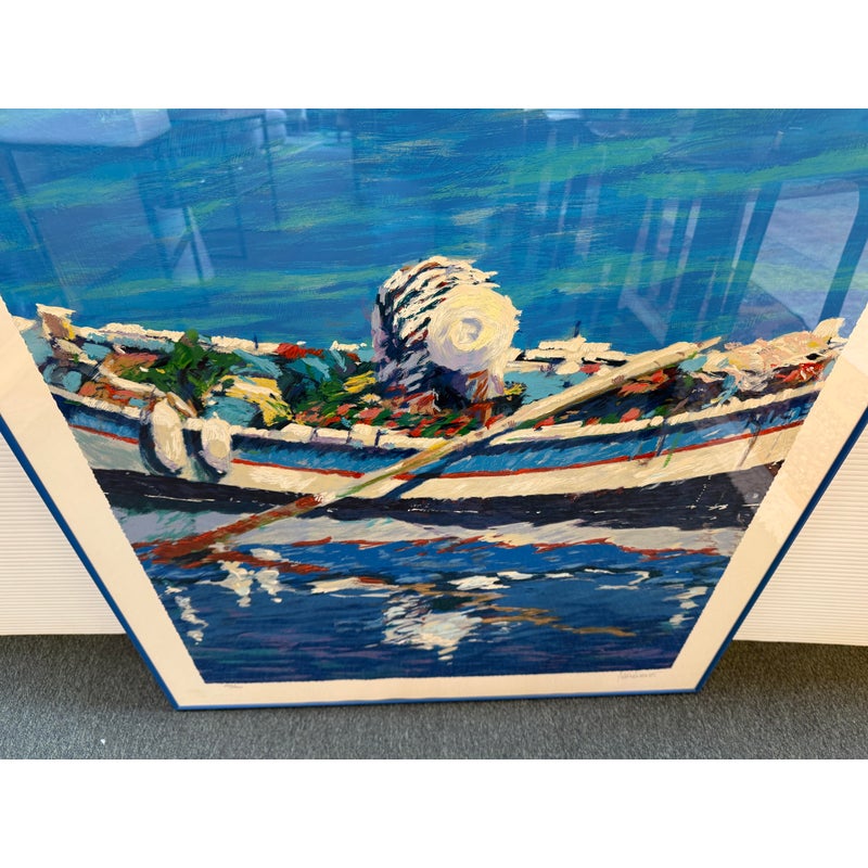Design Plus Gallery presents “Fishing Day” a Limited Edition Seriagraph by Aldo Luong. The piece is grouped in Impressionist and Modern art with the use of vivid colors and penetrating visuals. From his acrylics to his fine art prints, all of Aldo Luongo’s pieces embody the same sense of fluidity and intensity, the result of a true artist engaged in the passionate process of creation. His bold, impressionistic style has often been referred to as “Romance on Canvas”. The look at Fishing Day is just that, with a man at one with the sea, out for a day for his catch. It is signed on the lower right side in pencil with 253 of 250 on the lower left side, and is framed discreetly. It is in good condition for its usage.