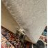 Design Plus Gallery presents a Contemporary Jones Apartment Sofa from All Modern. The sofa offers a crisp silhouette that keeps the design current with deeply cushioned back + comfortable seat cushions. The entirety of the frame is wrapped in neutral linen-like upholstery and elevated on polished steel legs. A pair of matching throw pillows are included. Visible soil and spill under cushion; condition is fair for age and use.