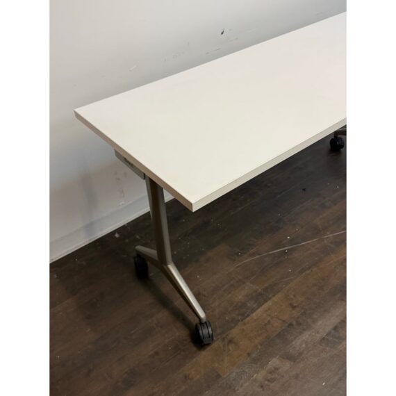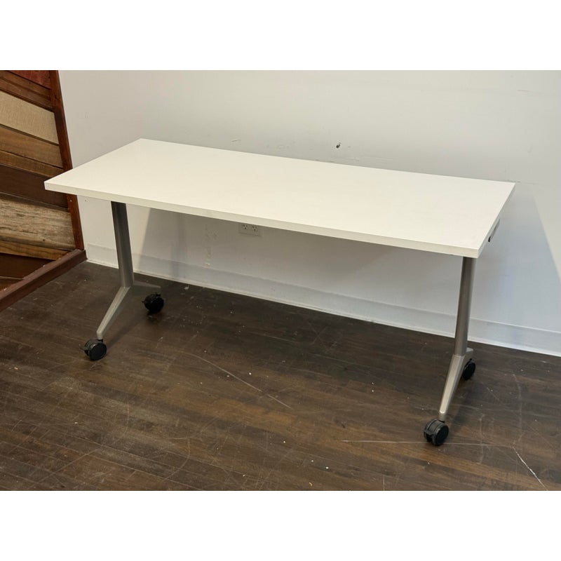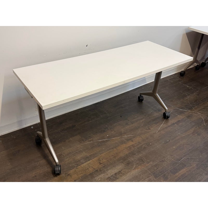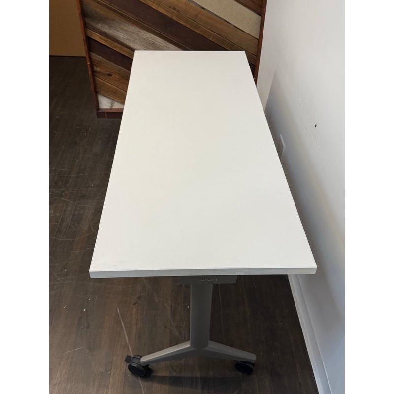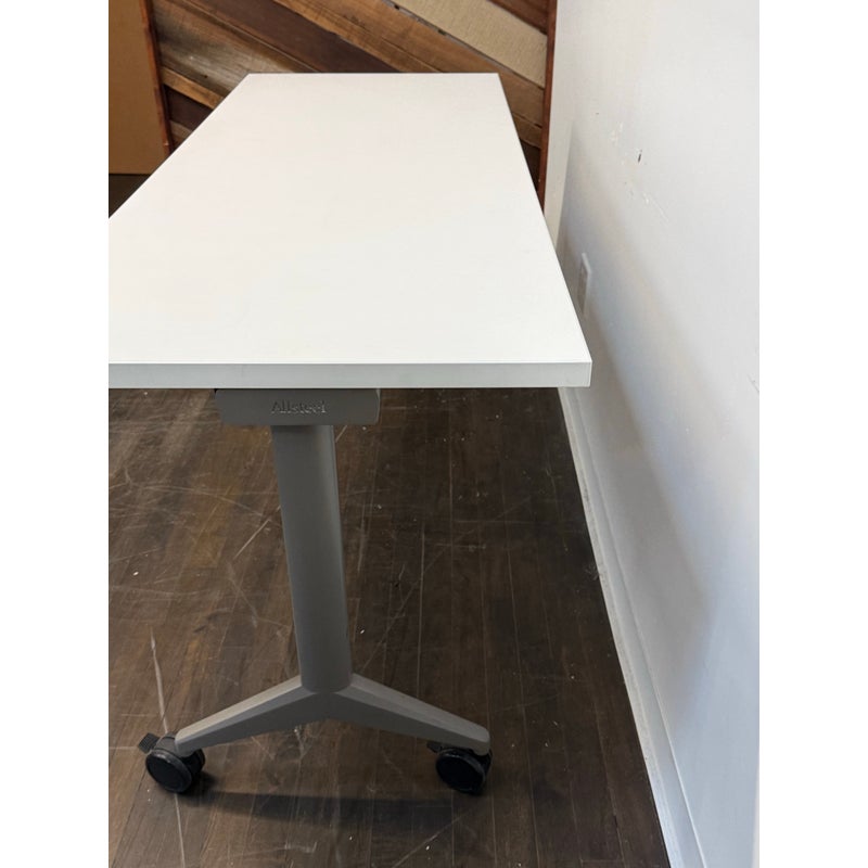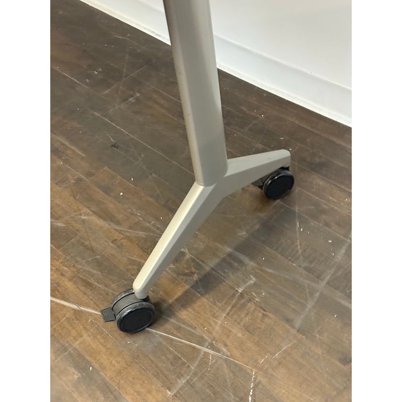 Design Plus Gallery presents the Aware Folding Table on Casters from AllSteel. This is quite the versatile mobile table as it is designed to support flexible learning environments, hard-working training rooms, multi-purpose café settings, and this list goes on and on as it is easy to reconfigure spaces as needs change. The laminate top provides a durable, easy-to-maintain surface suited for daily use, while the streamlined metal base offers stability without visual heaviness. Smooth-rolling casters allow the table to glide effortlessly, supporting collaborative layouts and quick transitions between tasks or activities. Its neutral palette and practical proportions make it an easy addition to modern commercial or educational interiors. In good condition, visible and minimal wear from usage.