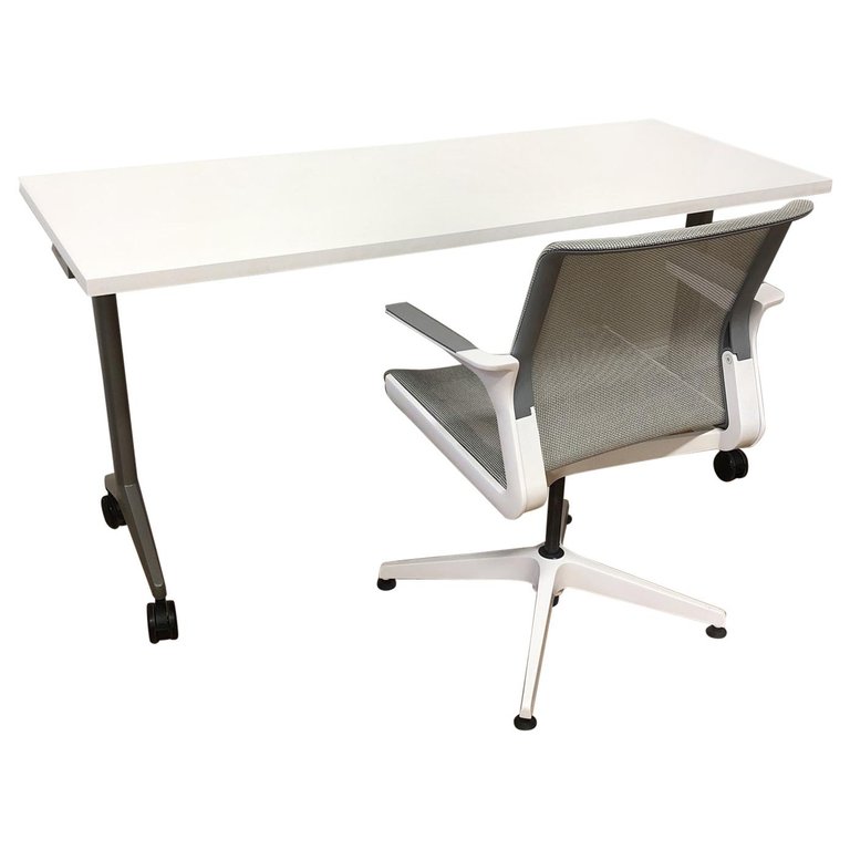 Design Plus Gallery presents an Aware Folding Table by Allsteel Furniture. The top is a frosty white laminate with a silver finish base. Has four black casters to make the table mobile. A mobile solution for flexible learning environments, hard-working training rooms, or multi-purpose cafés.