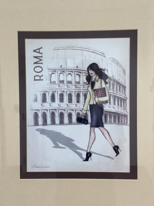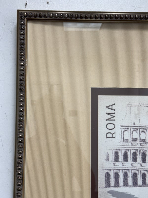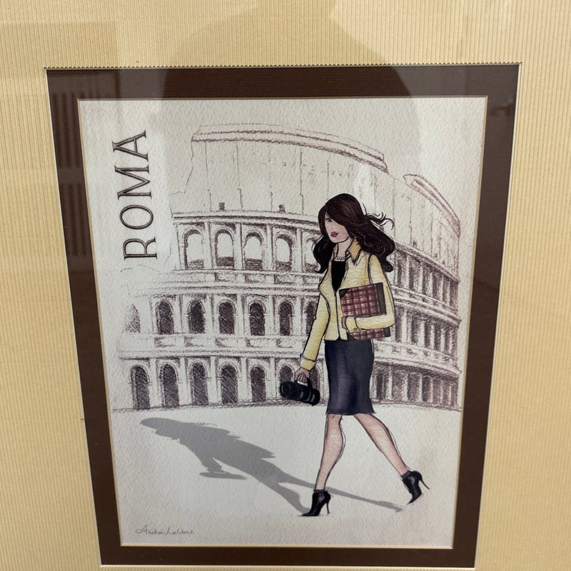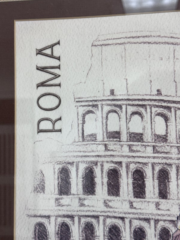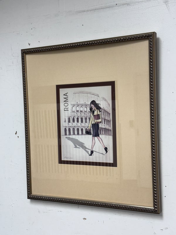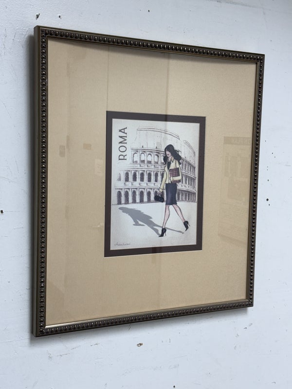 Design Plus Gallery presents a “Roma Poster” Print by Andrea Laliberte. Custom framed, in fair condition, was used for staging purposes.
