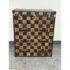 Design Plus Gallery presents the Howard Chest of Drawers from Andrew Martin. The trunk is a great juxtaposition of timeless + cool, wrapped up in leather straps with a soft lined interior. Howard has great storage with three large pull-out drawers. The vintage checkerboard pattern is complimented by brown leather trim and handles, all neatly finished with smart chrome stud detailing. Perfect for hiding away all manner of fun things. There is an add on addition to the top portion that buckles down and open like a traditional luggage trunk. Transform your space with this killer trunk. This is a one-of-one trunk and color way is discontinued. Is in good condition with distress that is manufactured + designed as rustic European. Made in England.