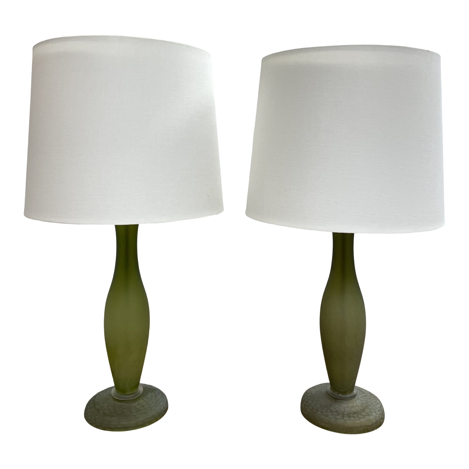 Angelo Donghia Murano Green Apple Frosted Glass Table Lamps – a Pair