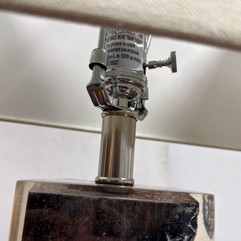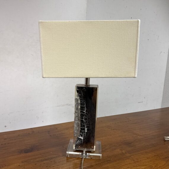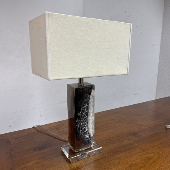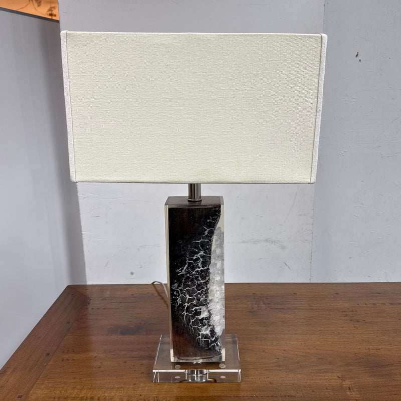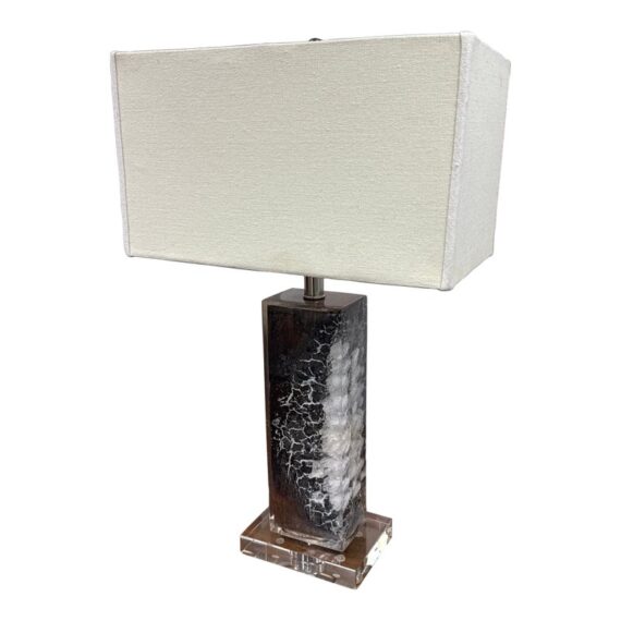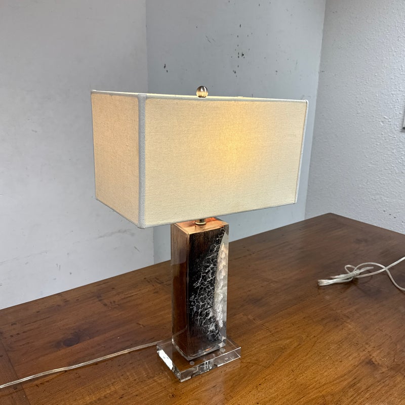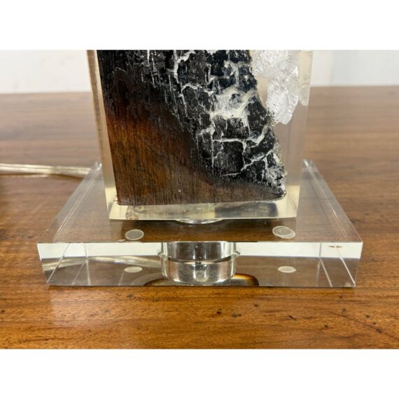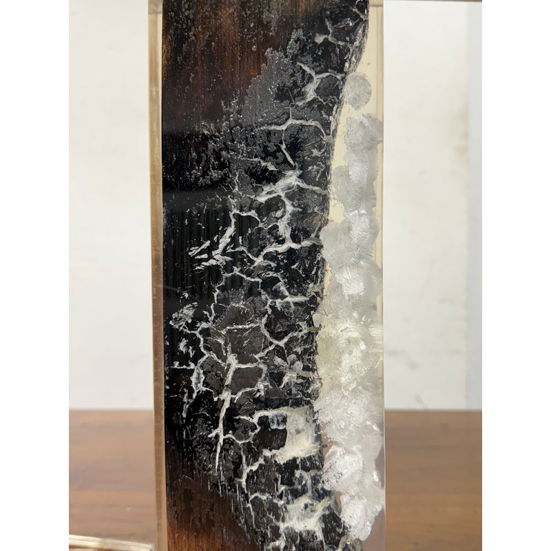 Design Plus Gallery presents a Scorches Timber Table Lamp by Anthropology. Encased in crystal-clear resin, a charred wood branch sits on prominent display, its hues ranging from delicate ash to rich chestnut brown. In good condition, minimal wear form usage + age. This is a discontinued model.