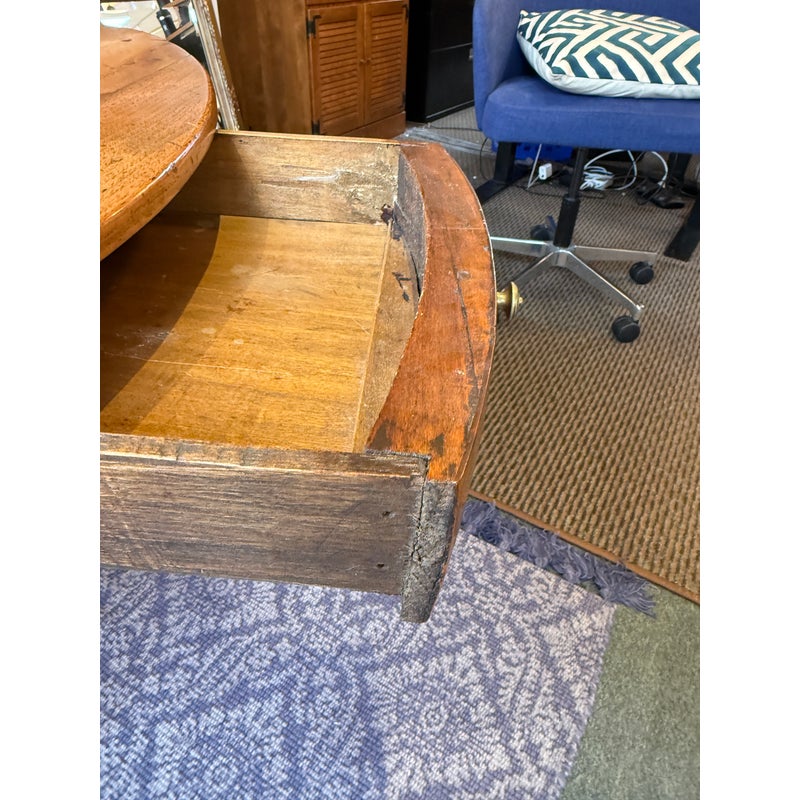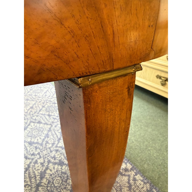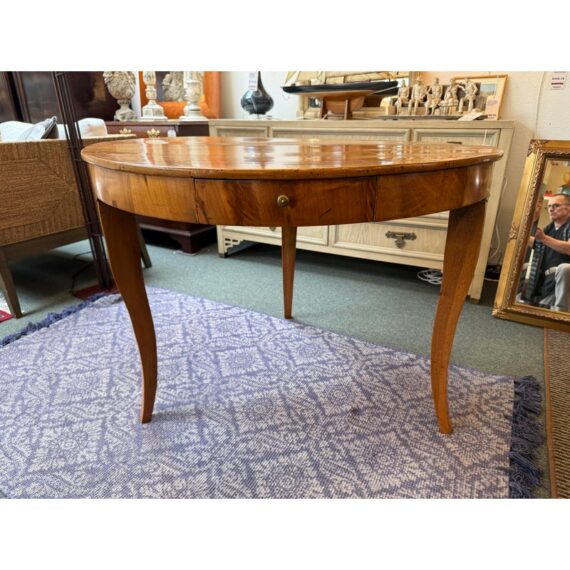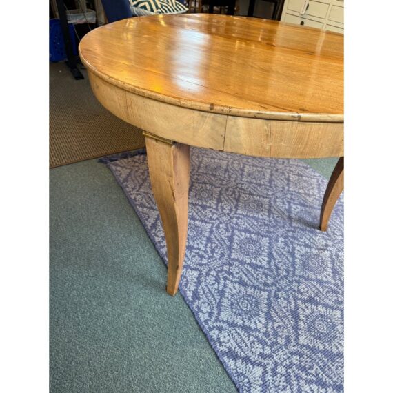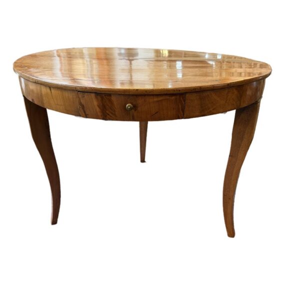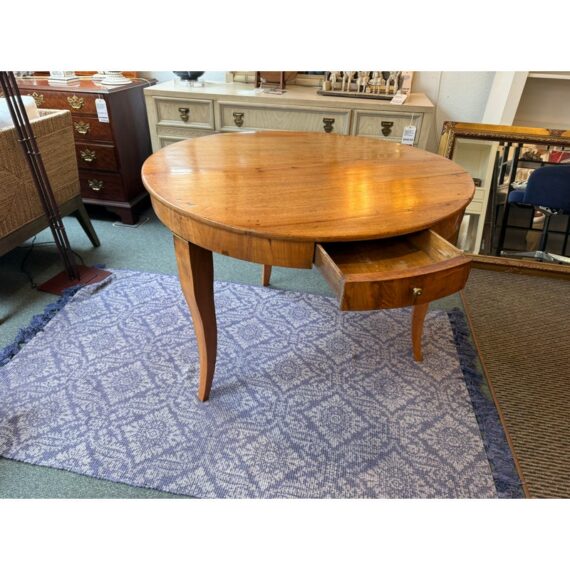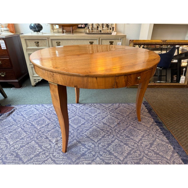 Design Plus Gallery presents a Northern Italian Center Table from the 19th Century. The table has a unique and elegant design that reflect the craftsmanship of the era. The table stands on three legs that have a cabriole positioning and brass embellishments found at their joinery to the table. There is a single drawer for storing items discreetly away when not in use. The table shows visible wear that is consistent with its antique age + use.