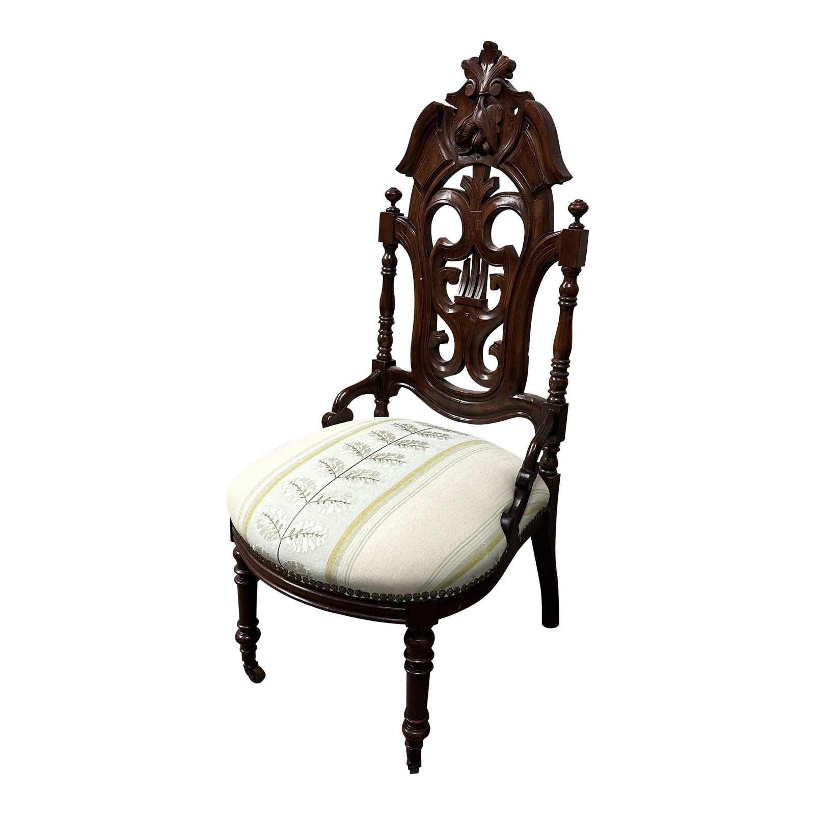 Antique Restored Gothic Revival Carved Walnut Hall Chair