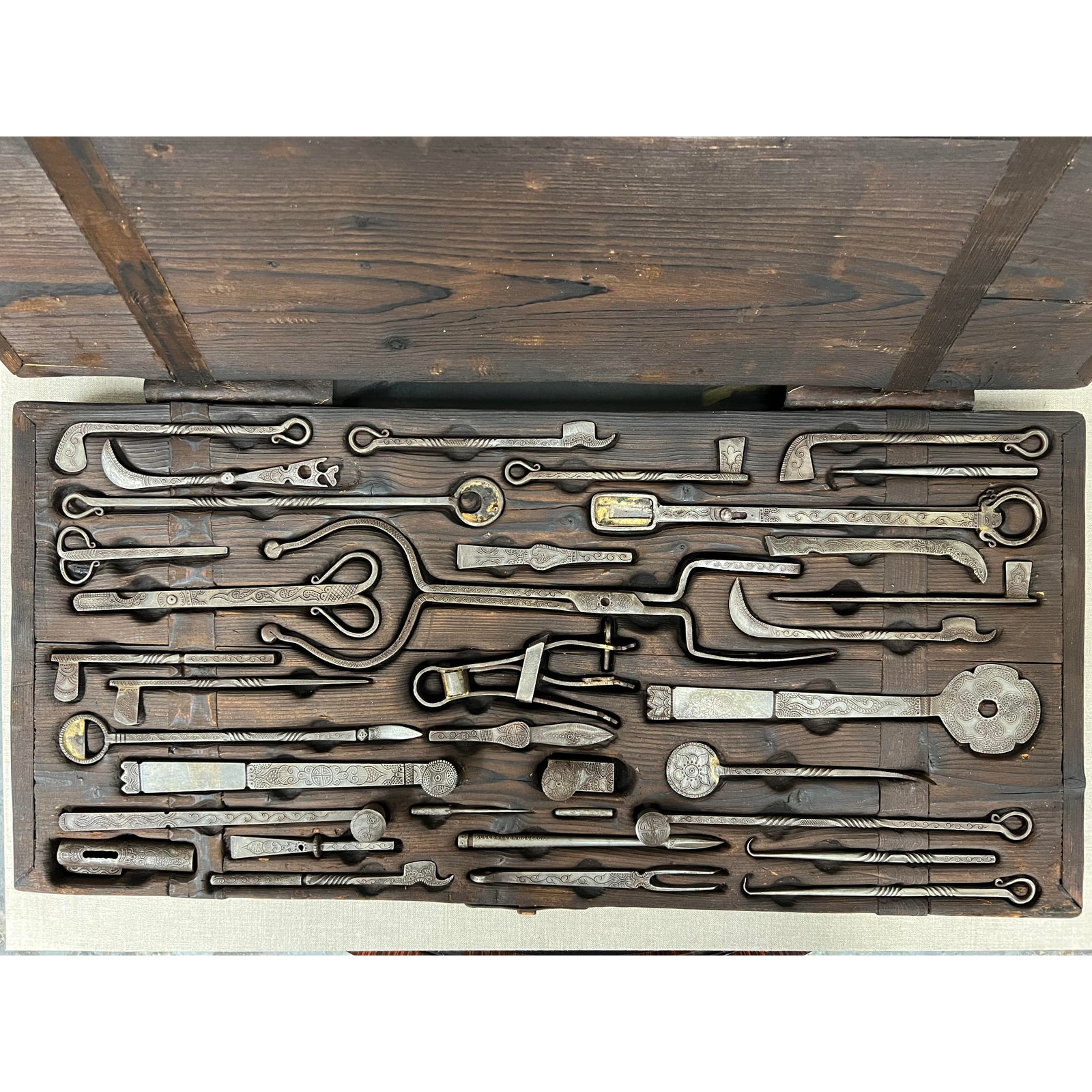 Antique Surgical Neurology Medical Kit + Custom Box + Stand