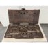 Design Plus Gallery presents the Antique Surgical Neurology Medical Kit + Custom Box + Stand. This neurology kit was found off an island in a high end antique store. The wood case’s top has one central and four corner accents, all metallic and featuring minute details. Minor and visible wear from age; medical kit is in good condition.
