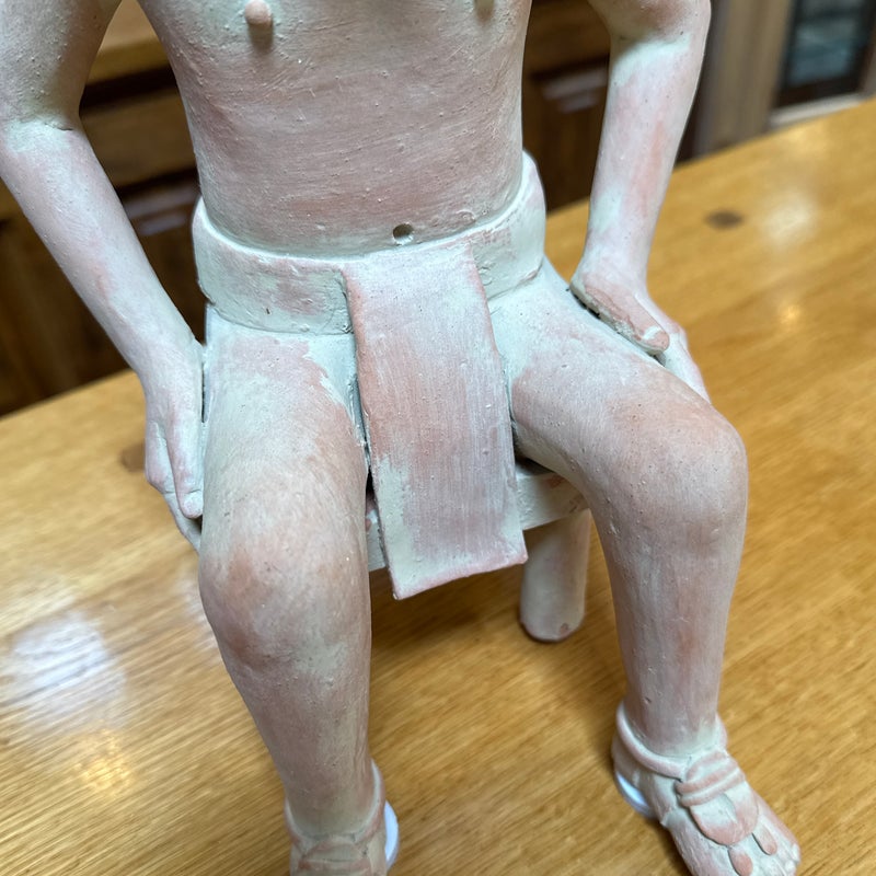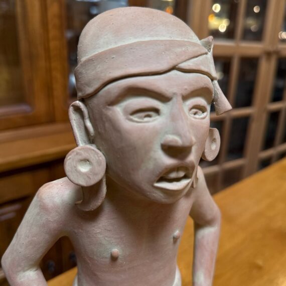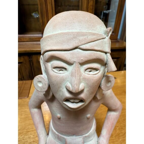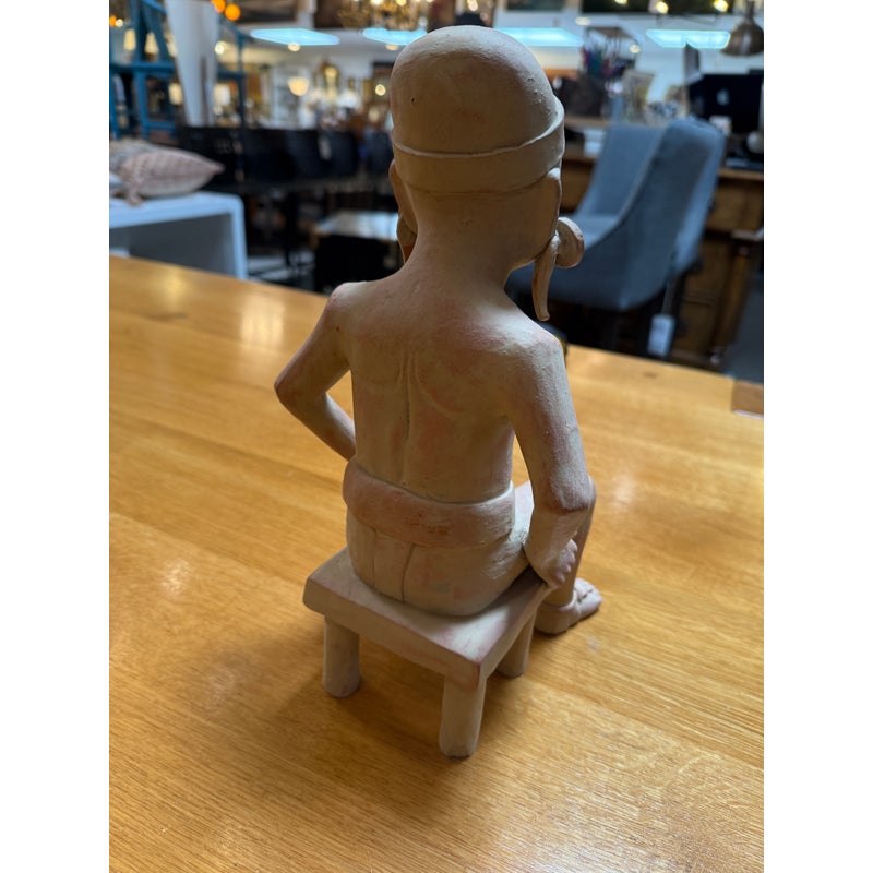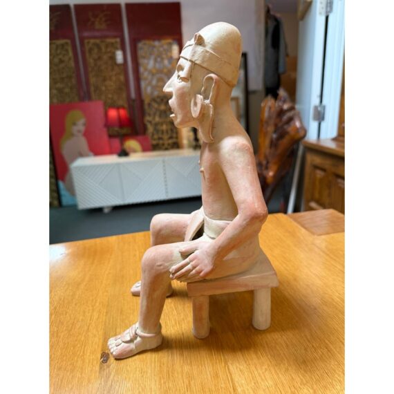 Design Plus Gallery presents an Antique Terracotta Sculpture. This beautifully preserved terracotta figure, shown in a sitting posture, wears clothing and personal decoration that suggests a middle class person c. 600-900 AD. Good Antique Condition.