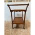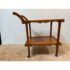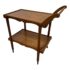Design Plus Gallery presents an Antique Tea Cart. A sweet + functional cart that is decorated with the subtle hand carved apron to its top + bottom shelves. An elegantly curved handle and its small brass casters move the cart to exactly where needed when entertaining or relaxing. Light surface wear is consistent with age and use.