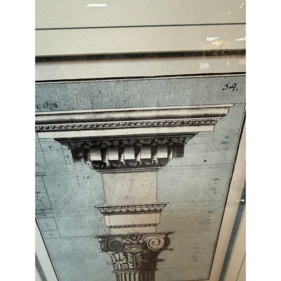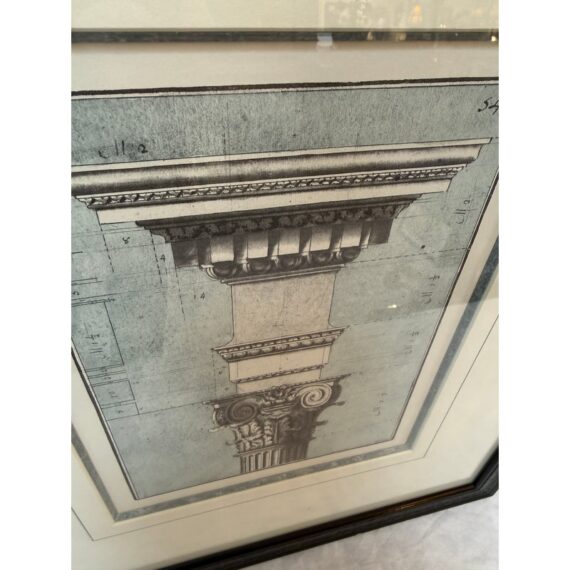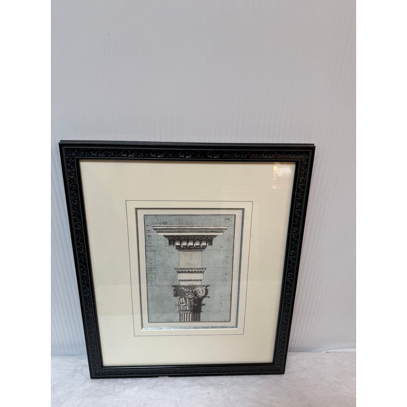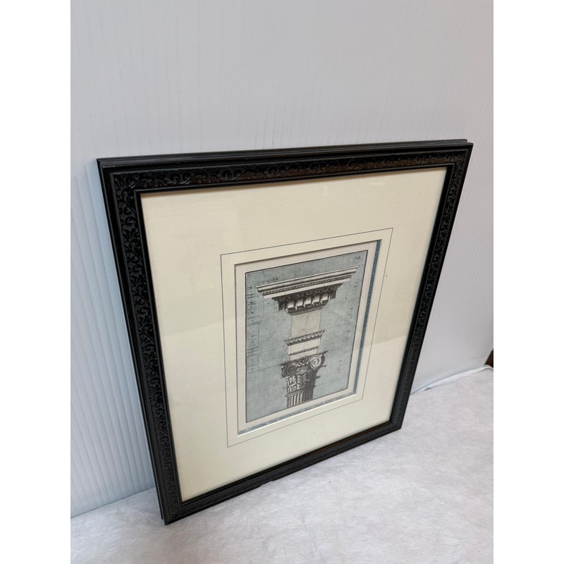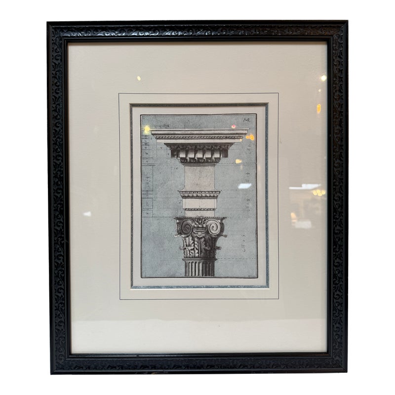 Design Plus Gallery presents a Reproduction Print of the Corinthian Capital . The print has the pedestal or capital proudly displayed in a black frame with thick off white matte. The pedestal detail is perfectly displayed with all its carved elements. The piece is in good overall condition.