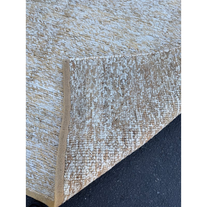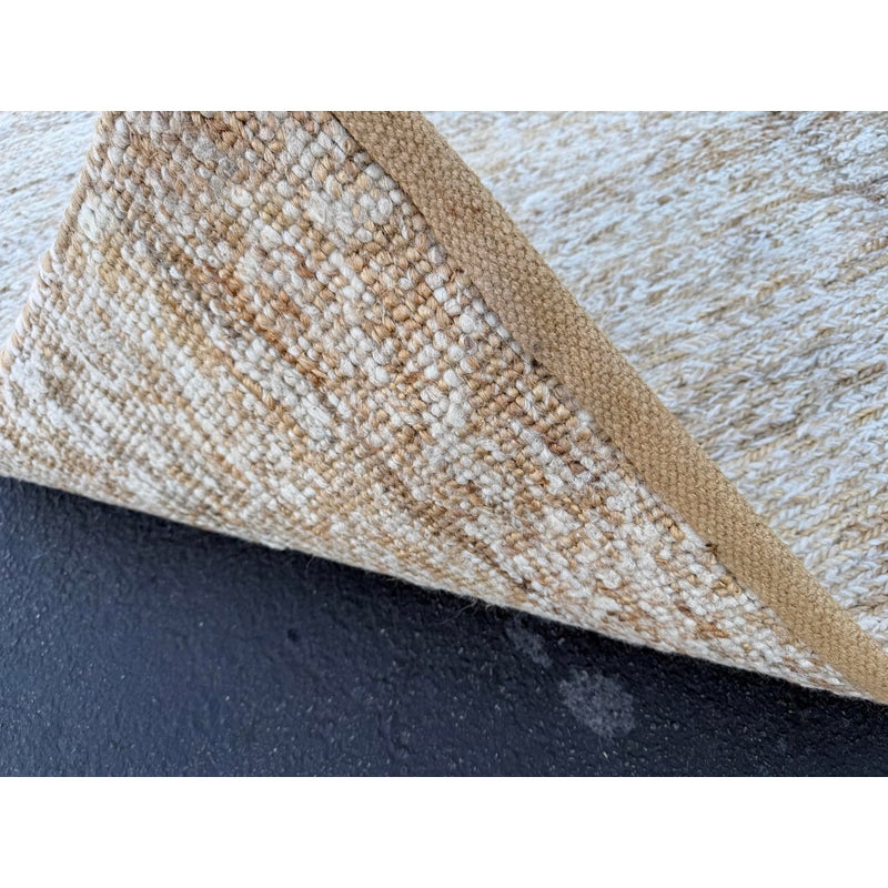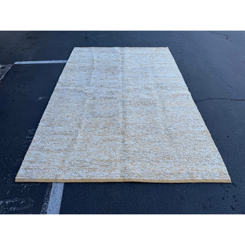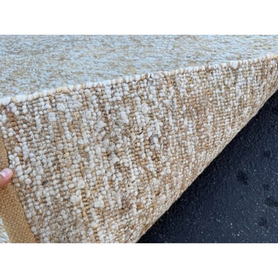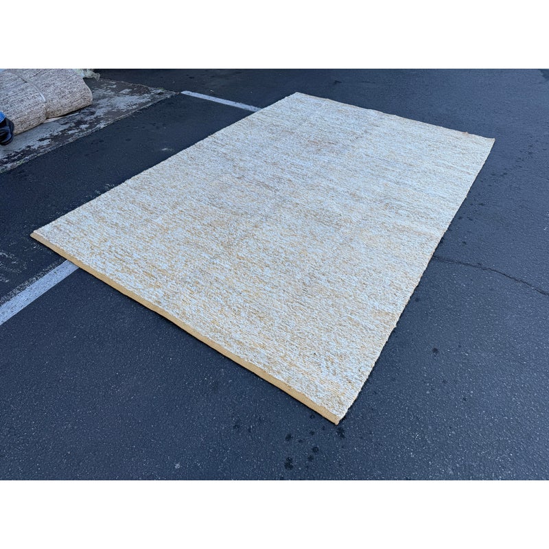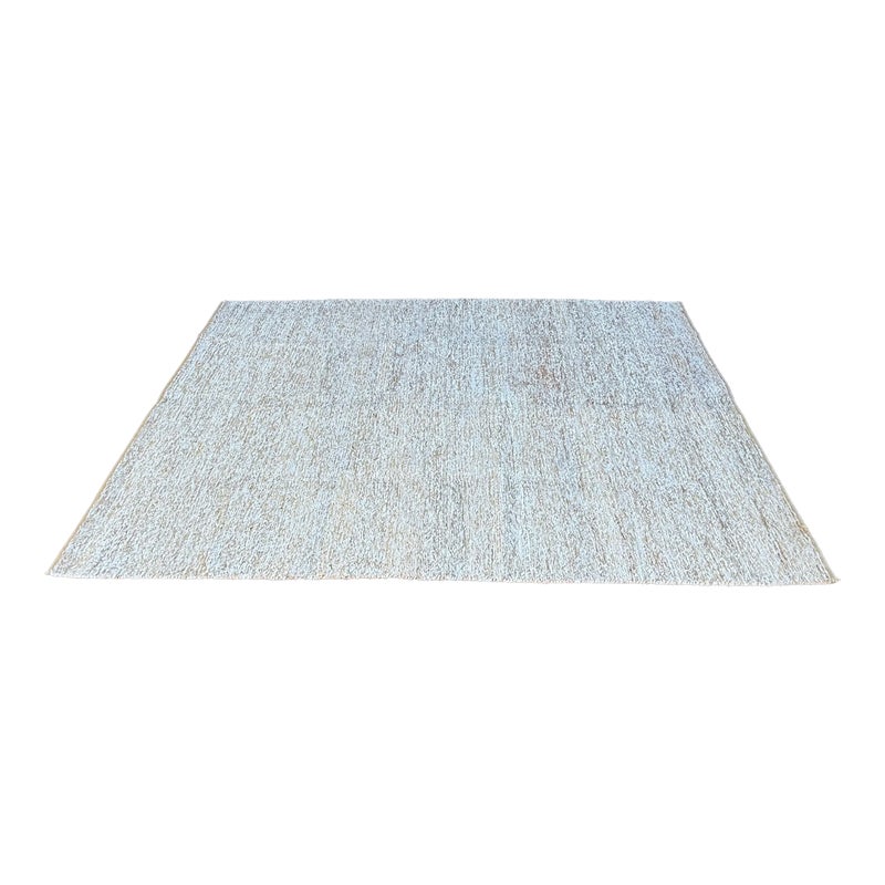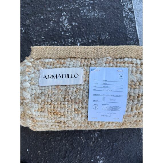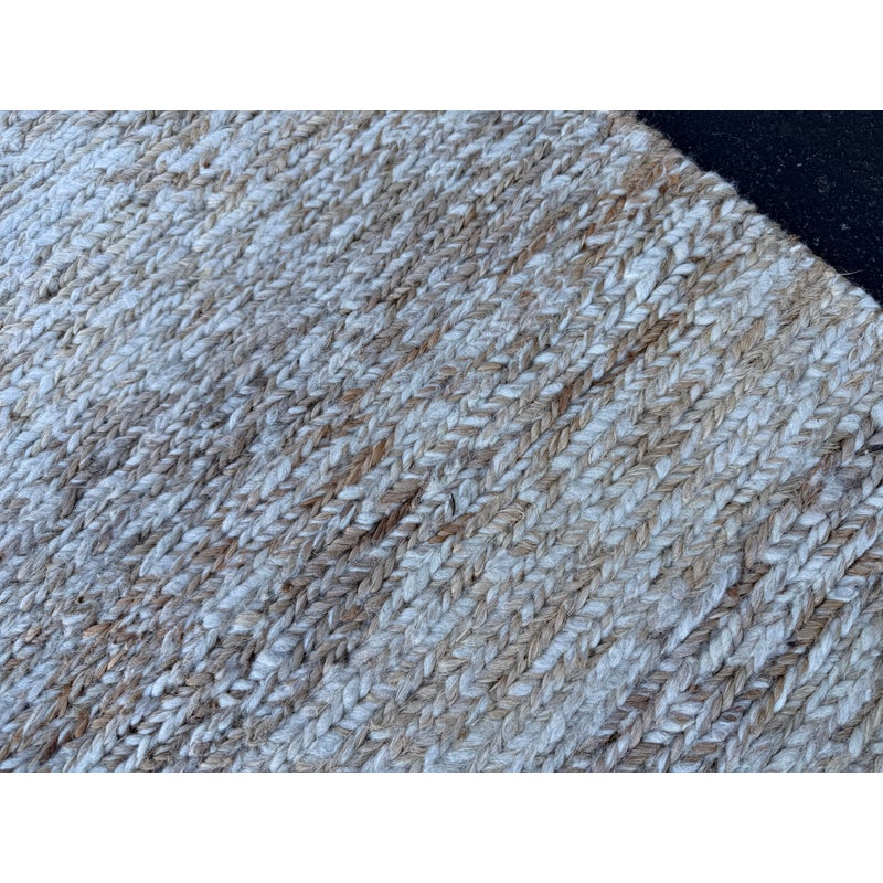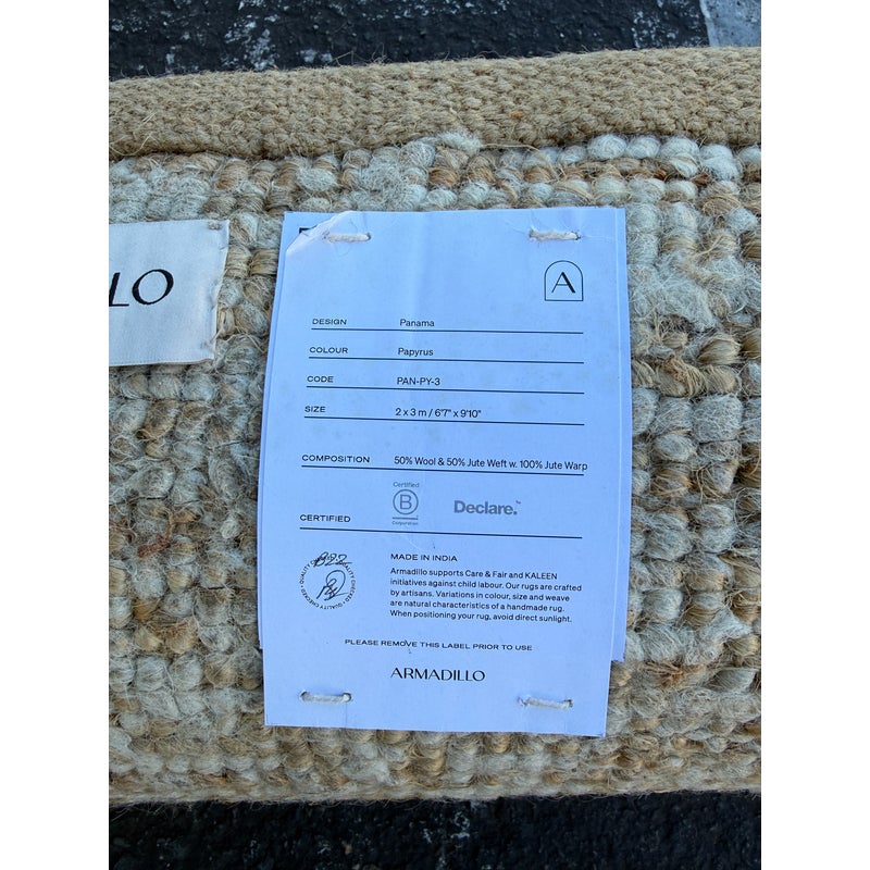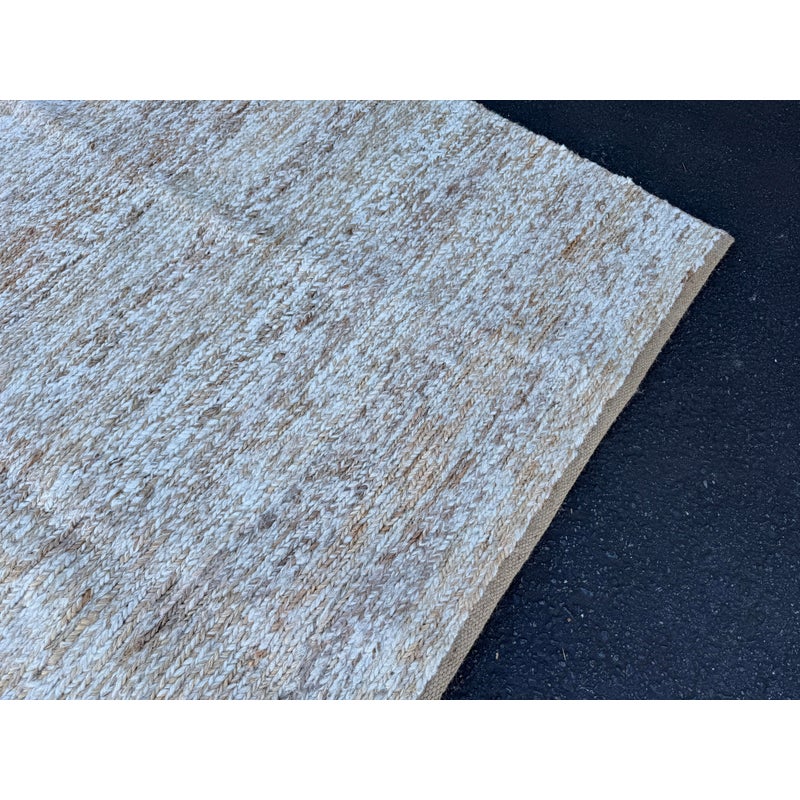 Design Plus Gallery presents the Panama Rug by Armadillo. Panama is crafted by hand using a soumak method, interweaving jute with virgin wool. The plaited fiber is left raw and full of tonal depth before being dyed to create subtle variations in papyrus hue and a unique, one-of-a-kind piece. Visible sun damage; condition is fair for age and use.